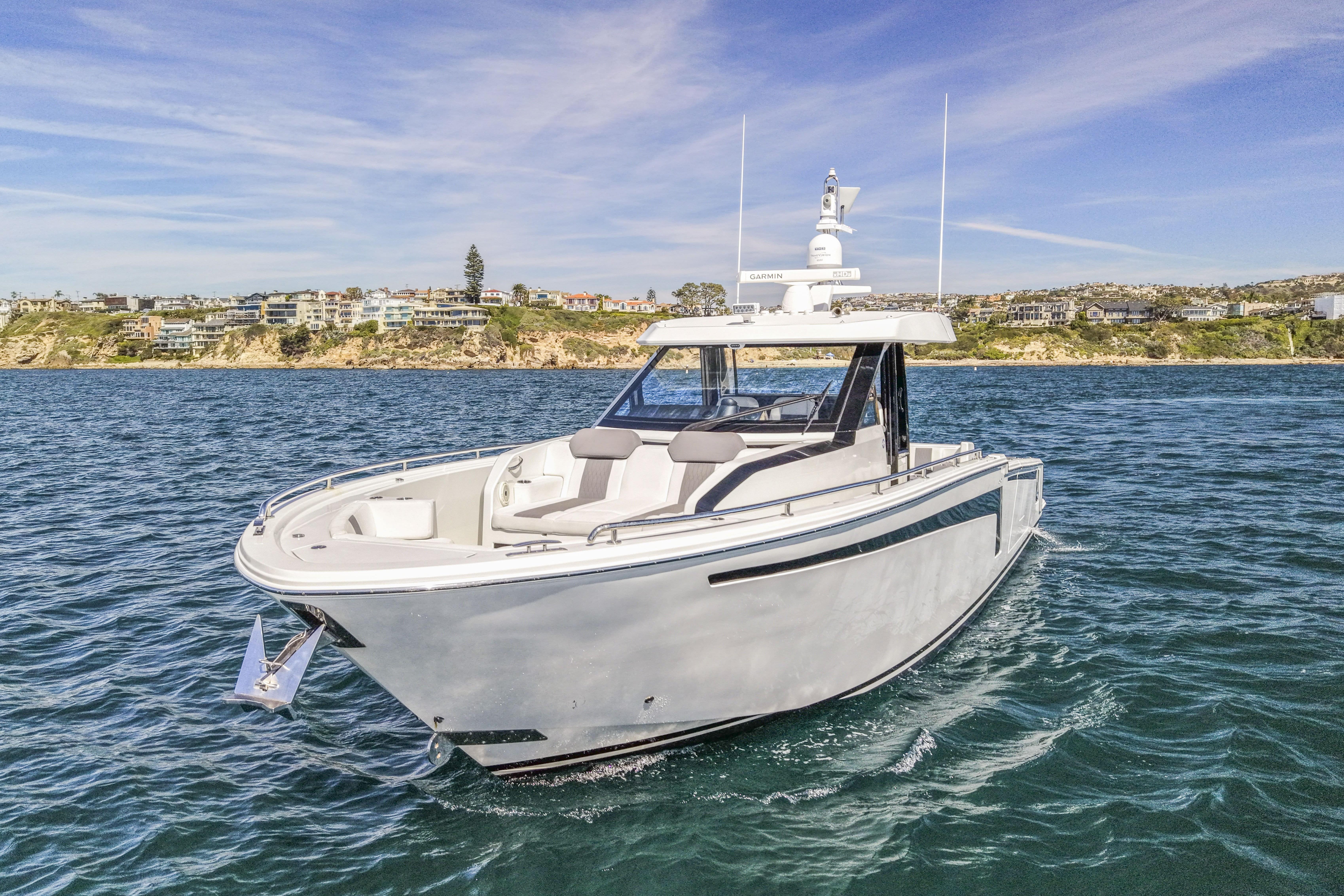 The 2021 Ocean Alexander 45 Divergence “DADDY ISSUES” is a high-performance luxury center console built for owners who want serious offshore capability combined with the comfort and systems typically found on much larger yachts. Powered by quad Mercury Verado 400 outboards, this 45’ platform delivers exceptional speed, reliability, and range, making it equally suited for offshore runs, island cruising, diving trips, or entertaining on the water. With 607 gallons of fuel capacity, the Divergence offers impressive cruising range and the confidence to comfortably run long distances offshore. Joystick piloting with Mercury SkyHook and an integrated bow thruster provide precise low-speed maneuverability, making docking and tight marina handling simple even for short-handed crews.