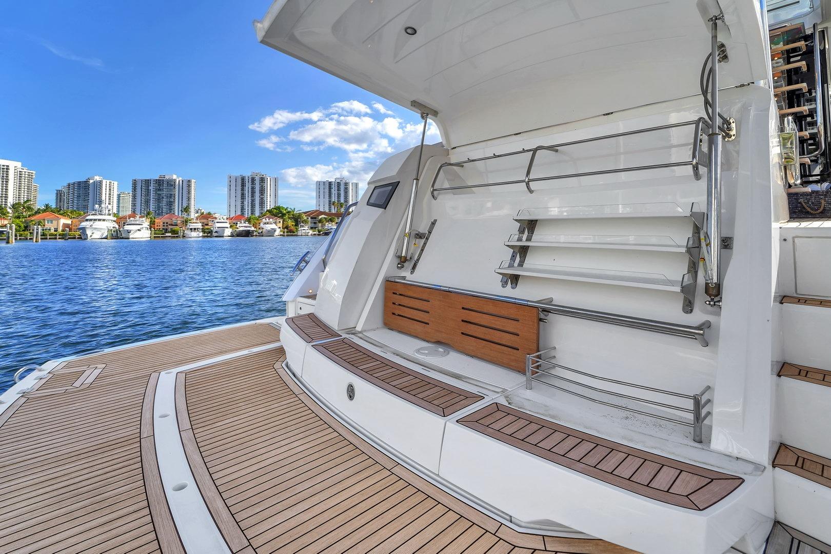 - Stern storage for watertoys (seabobs, dive tanks) with teak bench / overhead shower