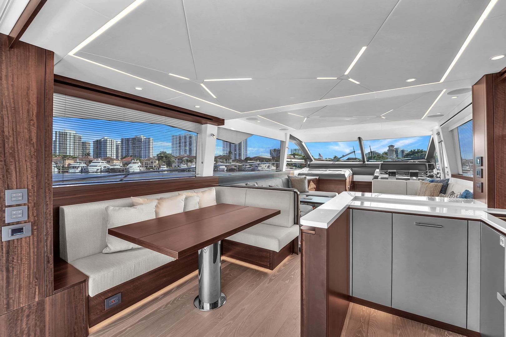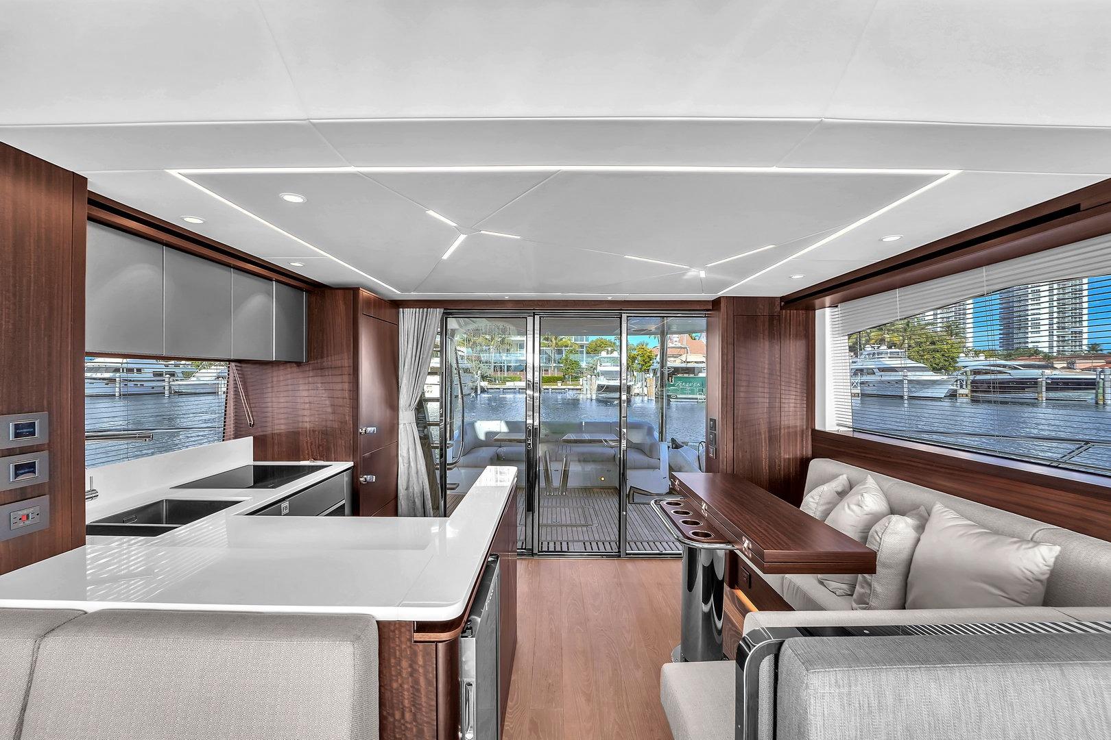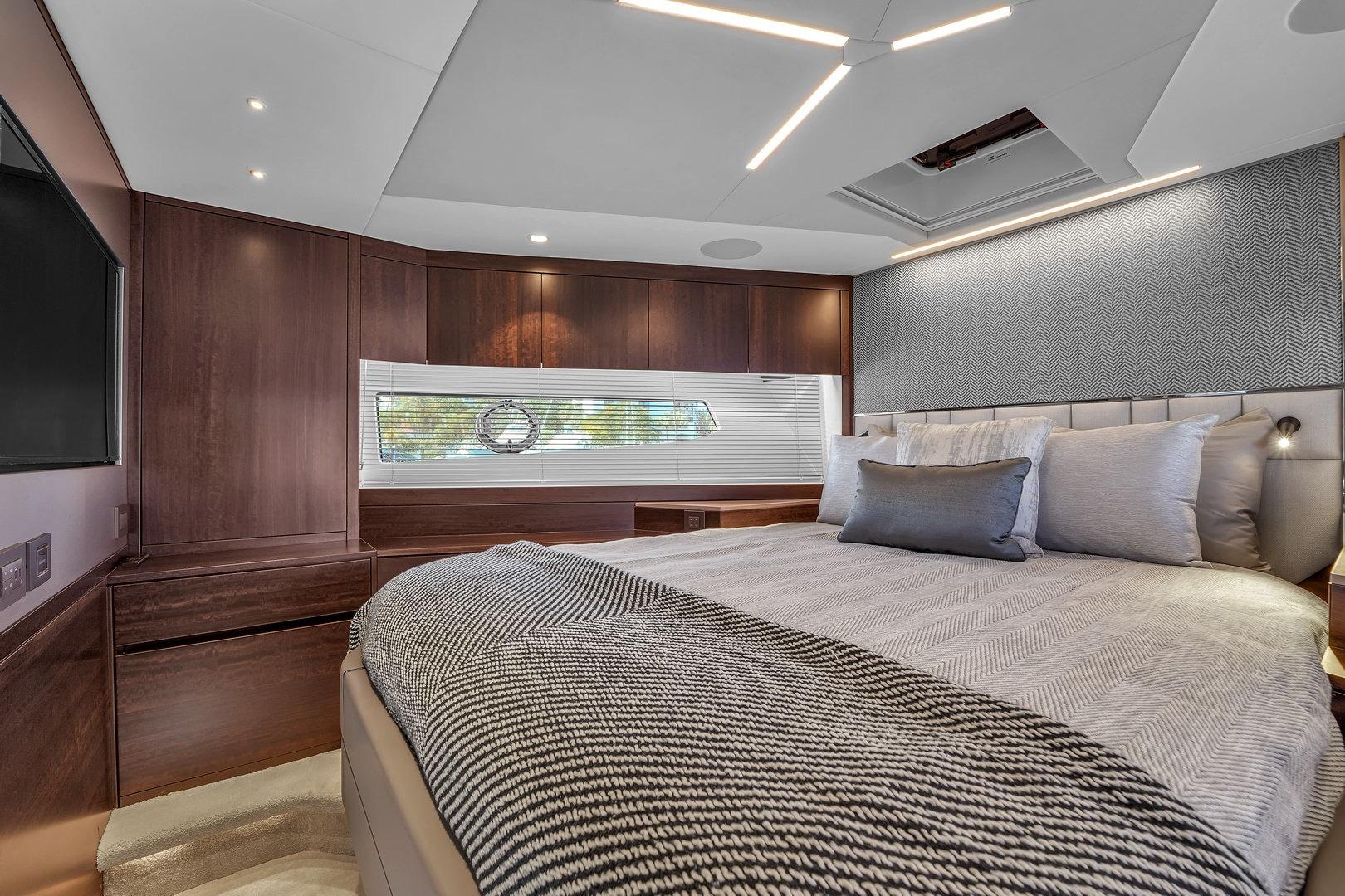 This version of the Manhattan 68 eliminates the 4th cabin bunk and extra staircases to deliver a spectacular Grand Master suite with separate office. The salon also doubles the seating capacity with a second U-shaped lounge creating an entertainment space typically reserved for much larger yachts.