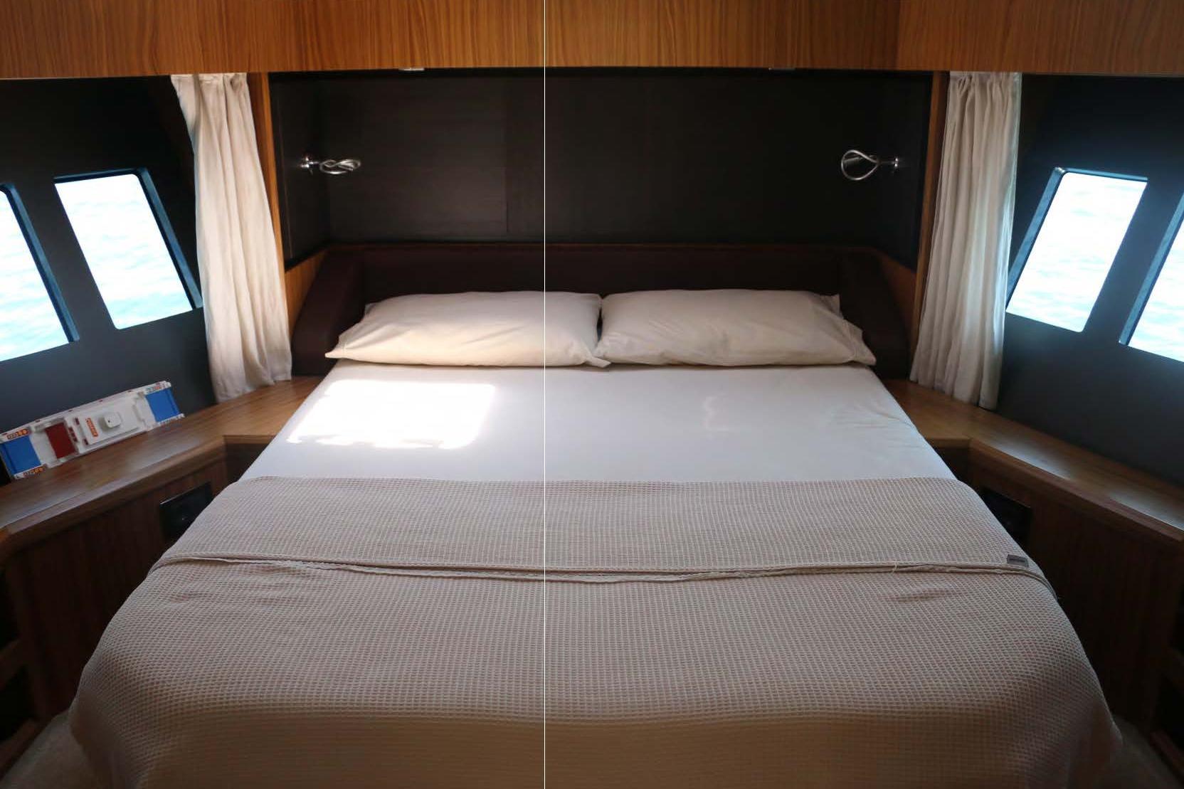 Her smart interior layout features 2 double cabins, 1 twin cabin and 2 bathrooms, plus a separate crew cabin, offering generous accommodation for family cruising or entertaining guests on board.