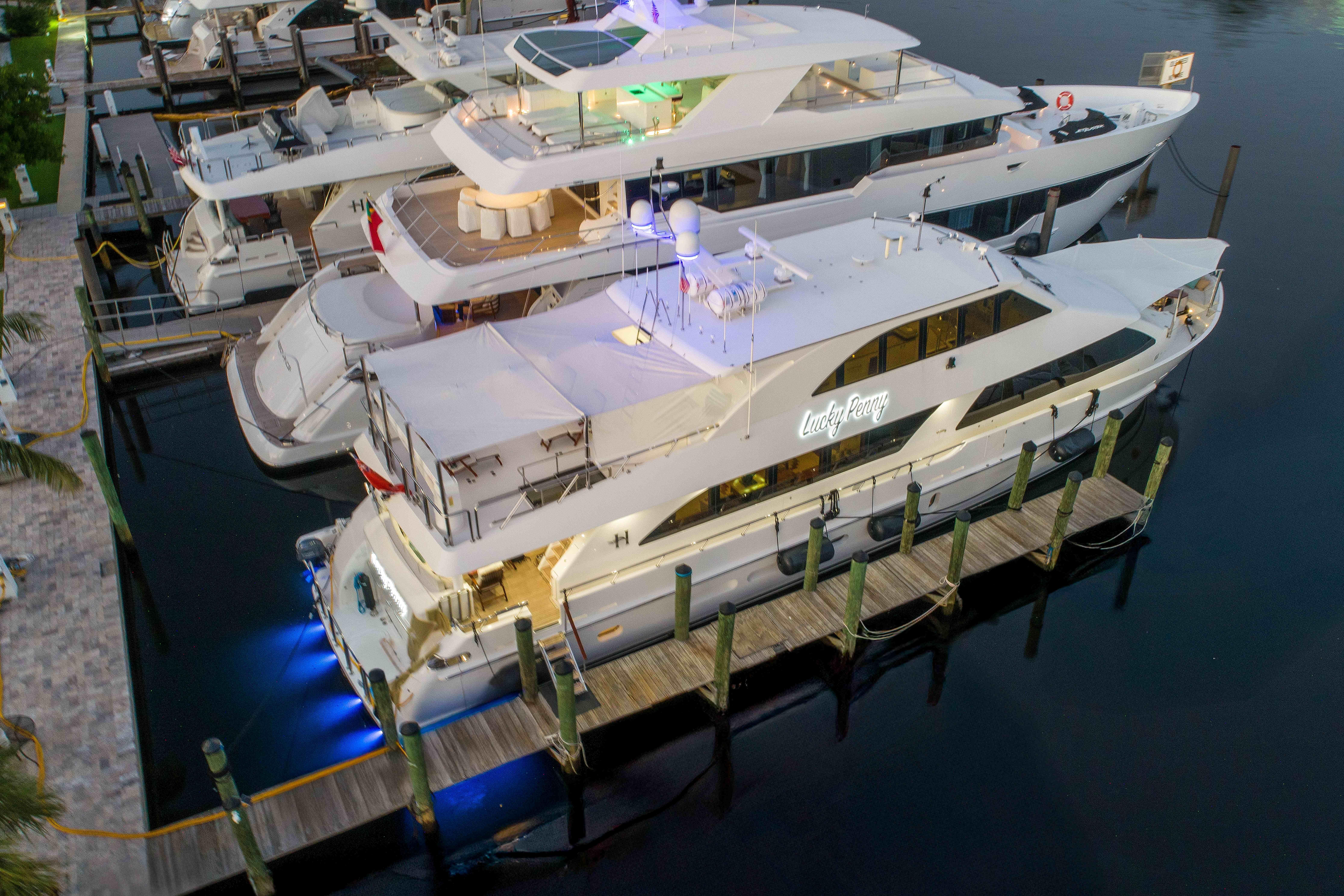 Purpose-built to bring three generations of family together, this yacht is a true memory-maker. Whether at anchor or underway, few yachts under 100 feet can match the entertaining space, comfort, and style of LUCKY PENNY’s remarkable sky-lounge, bathed in natural light and offering panoramic views from every angle.