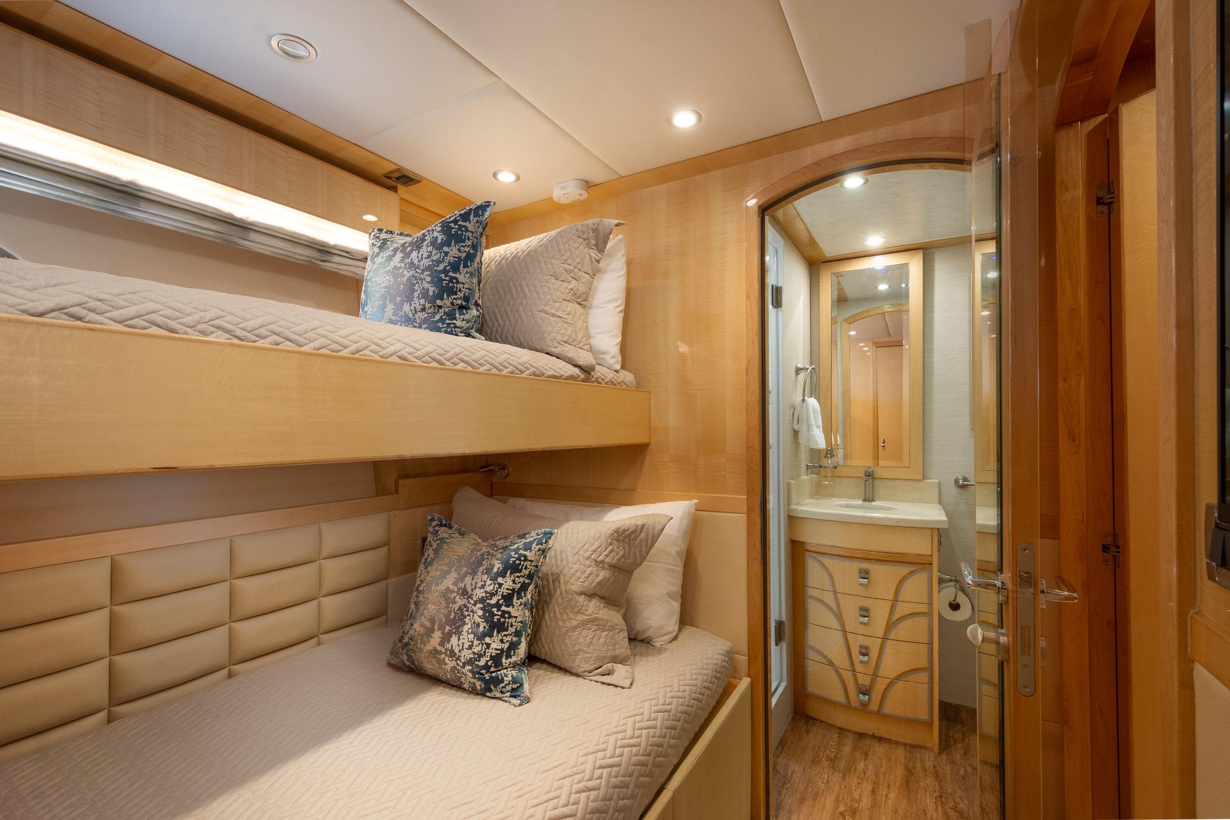 - Fifth Guest Cabin: Upper and lower berths with en suite bath, ideal for children or additional guests.