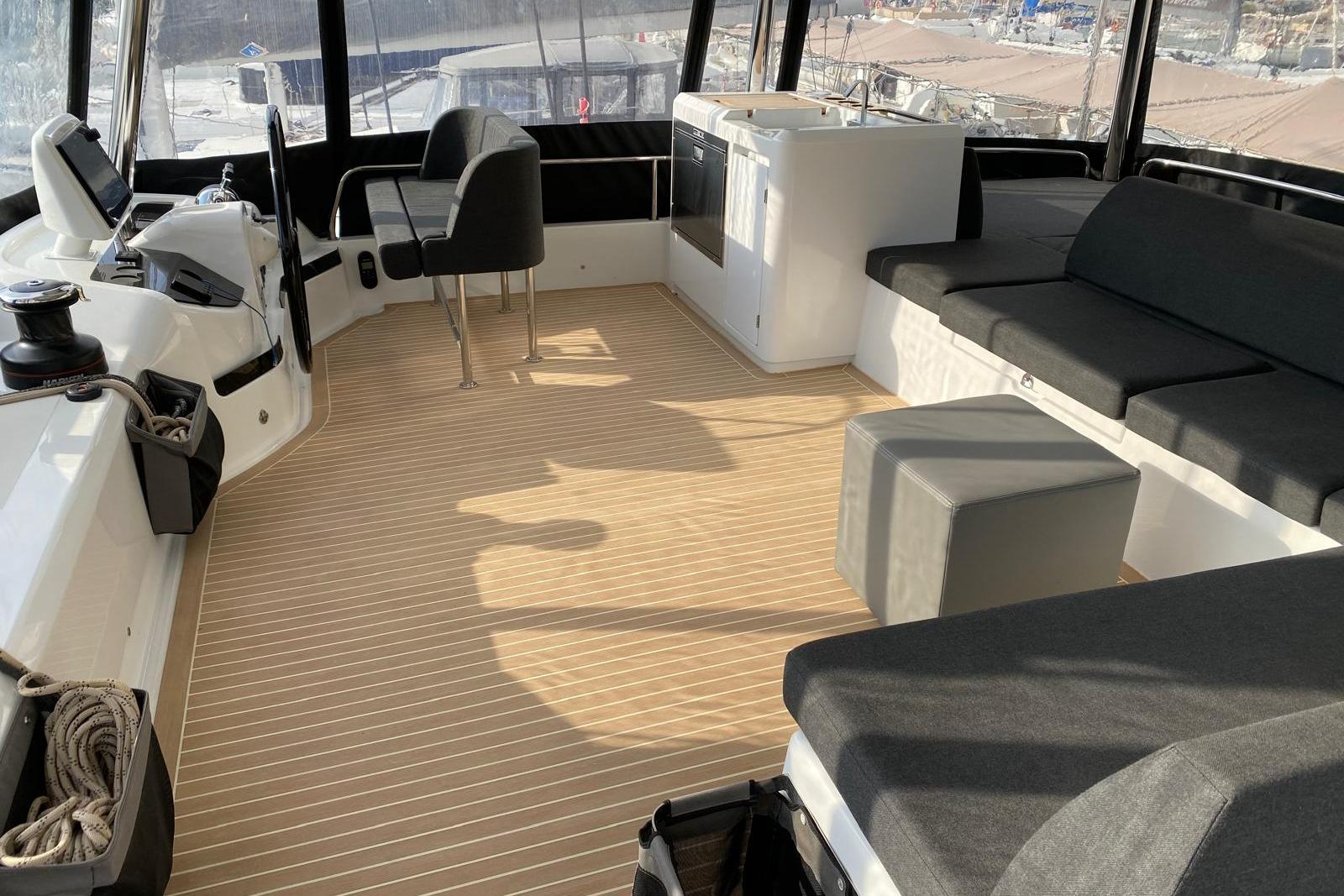Electrical & hydraulic systems optimized for comfort, with 230V outlets, USB ports, Navicolor monitoring, and all electric winches