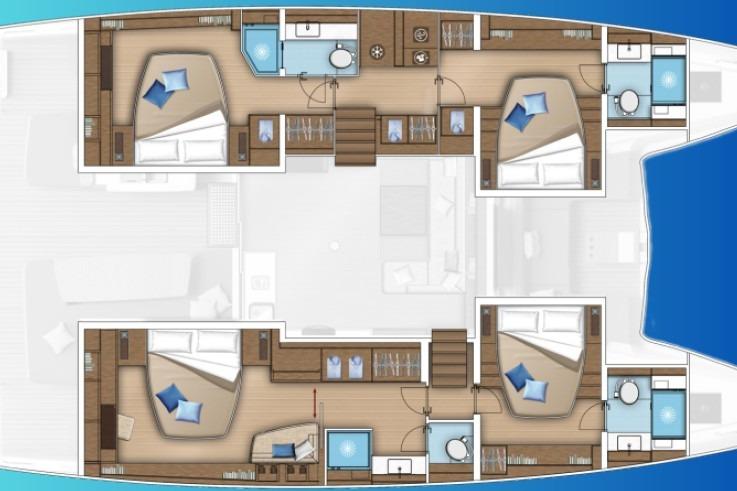 Key Features & Layout4 cabins + 4 bathrooms, including dedicated captain’s cabin with private head and shower