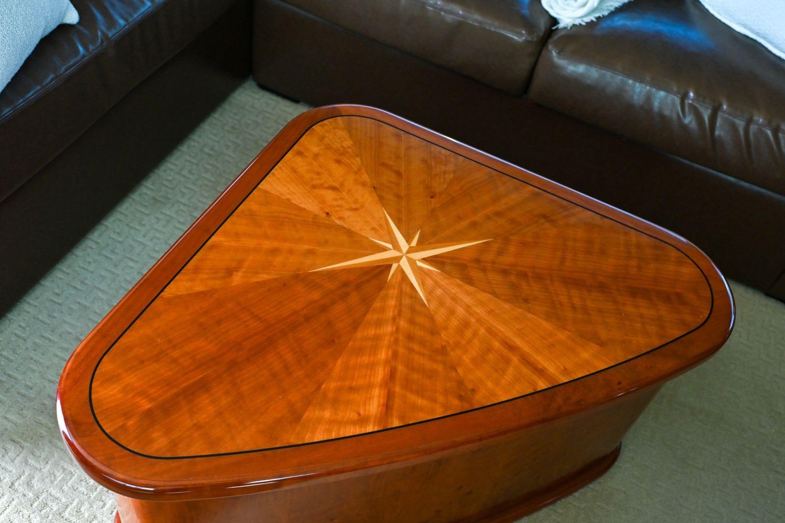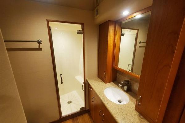 Sleeping accommodations are forward of the galley and feature a standard four-stateroom, three-head arrangement. The luxuriously appointed master stateroom features a queen-sized double berth along with a large built-in dresser, matching nightstands, and full-length hanging locker. Forward is a beautifully designed master head with same detailed woodwork and cabinetry found throughout the vessel. In the bow, the VIP stateroom can be configured for a large double berth, or a separate V-berth arrangement. The VIP also has its own private head. On the portside are two bunkrooms separated by the day head. An over-under arrangement in each room allows for comfortable accommodations for crew or guests. Multiple options are available to allow owners the ability to customize the layout to meet their specific needs.