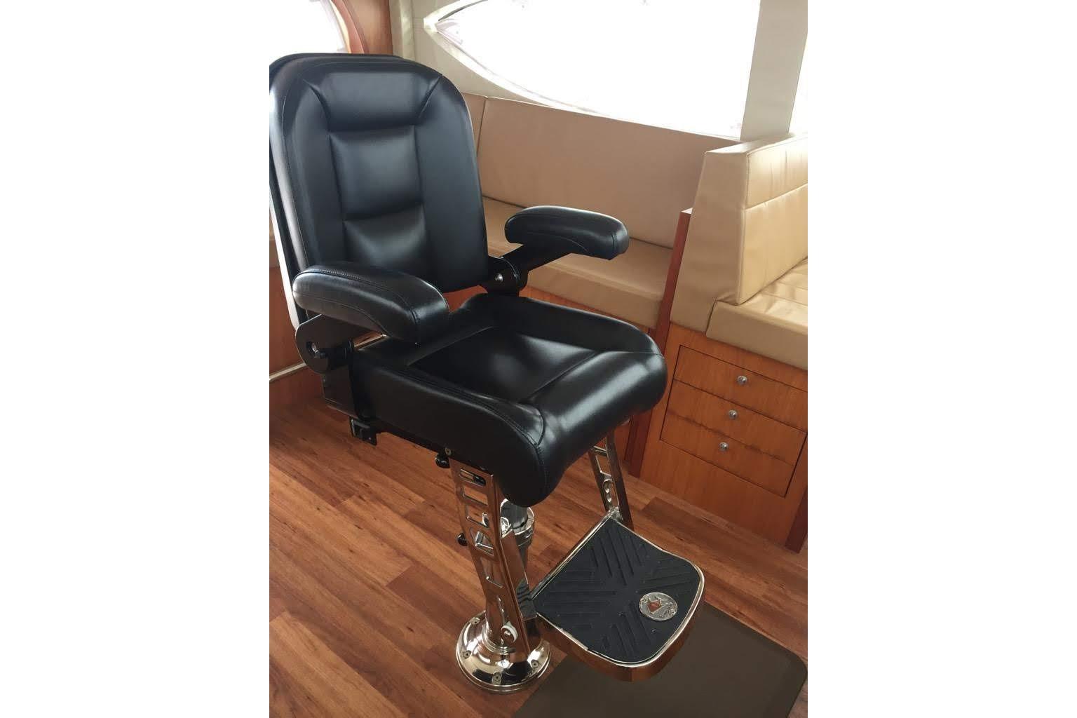 The GT63 is a best-in-class tournament convertible, and its cockpit is proof of that. It’s sized and equipped to meet the high standards of the most experienced crews. In addition to clever stowage for everything from tackle and rods to gaffs, there’s an optional recirculating livewell in the transom, twin refrigerated fish boxes, and a drop-down wing station with clutch and throttle controls. Passenger comfort is key in a top-notch cockpit too, so Hatteras engineered a mezzanine seat with a sloped backrest that can make a long run in choppy seas feel like a luxury ride.