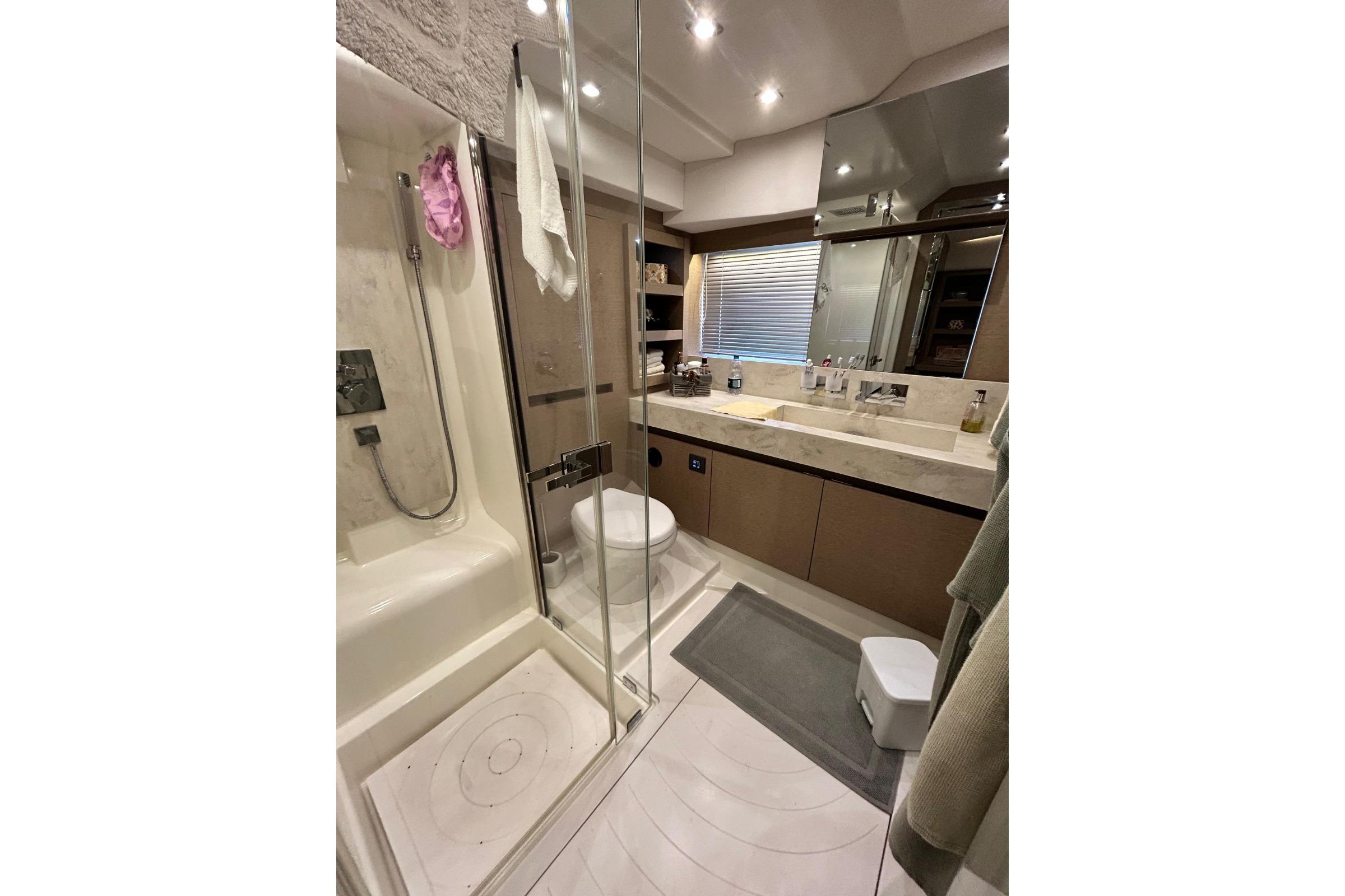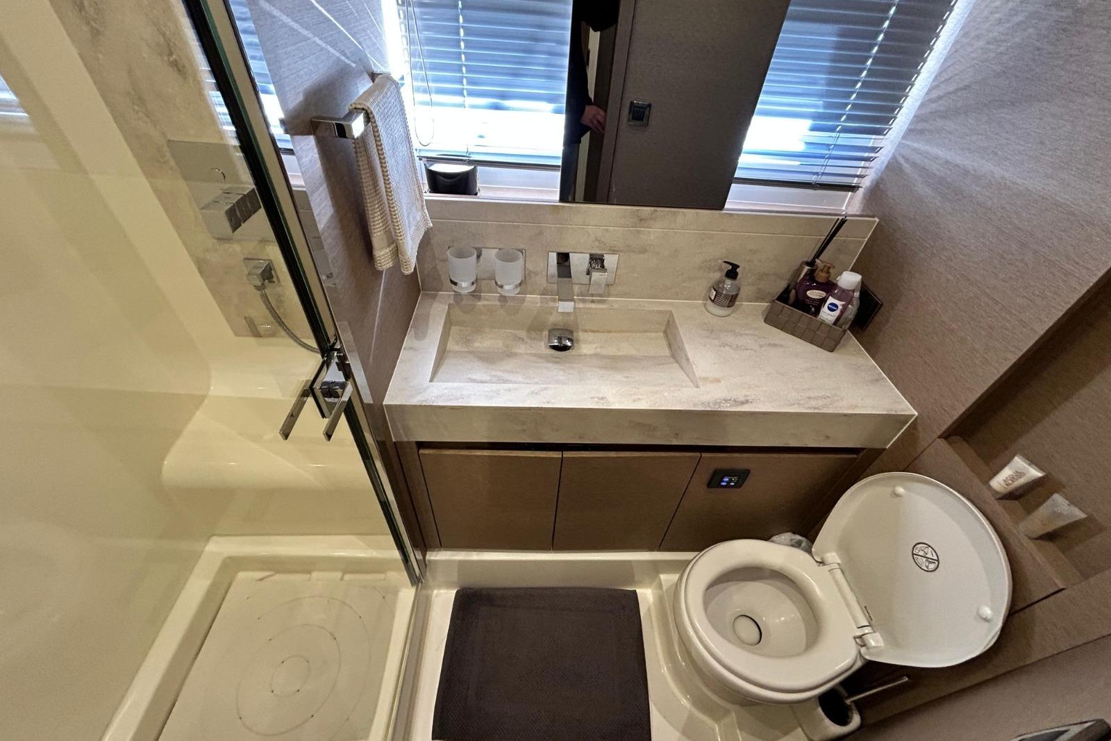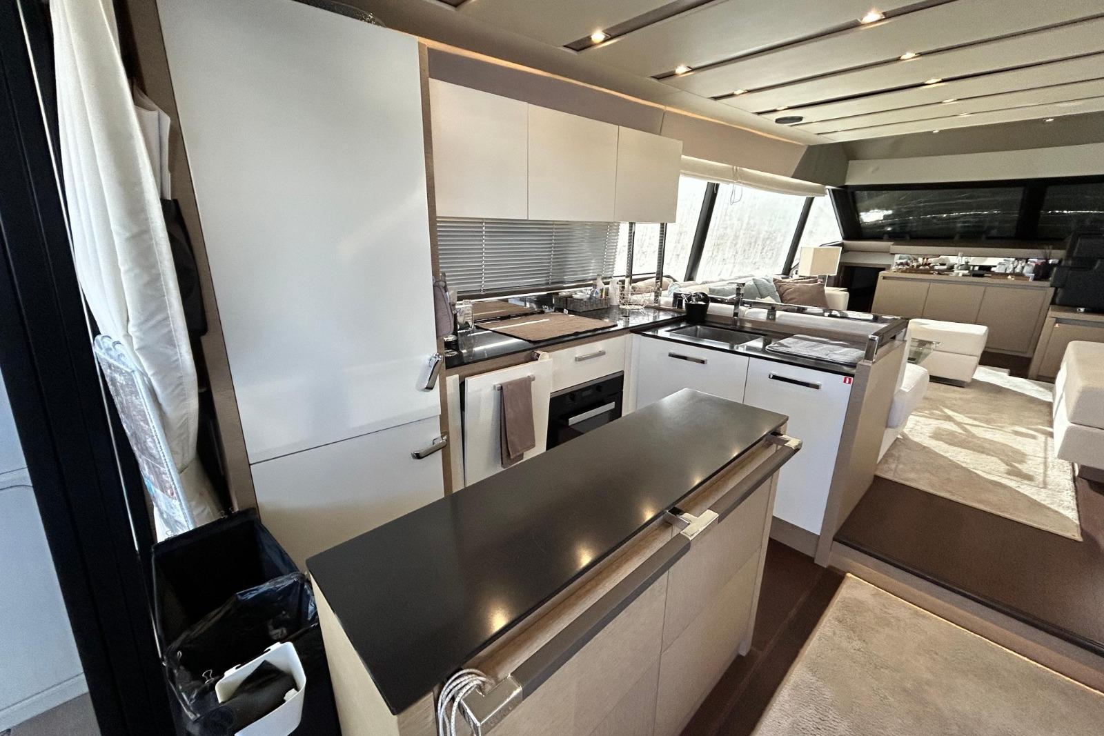 Il Prestige 680 conserva le caratteristiche tecniche storiche della gamma, beneficiando al contempo delle ultime innovazioni del cantiere. La barca è visibile su appuntamento in Liguria.