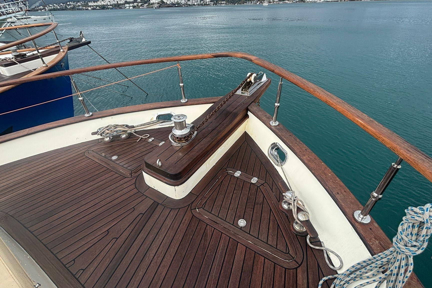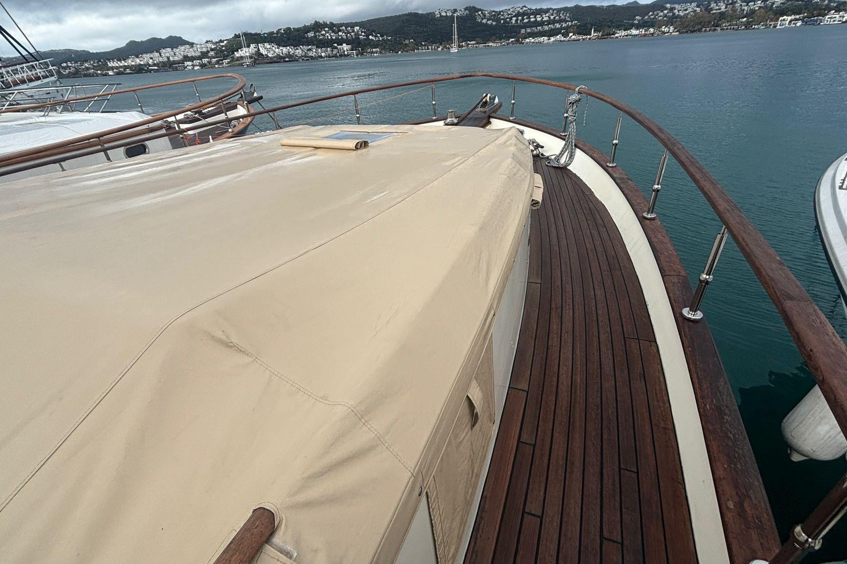 - Wooden interior decoration, dimmable interior and cockpit lighting, teak floors, large sunbathing area Deck, swimming platform/ladder, Opacmare telescopic gangway, separate crew cabin/shower/toilet