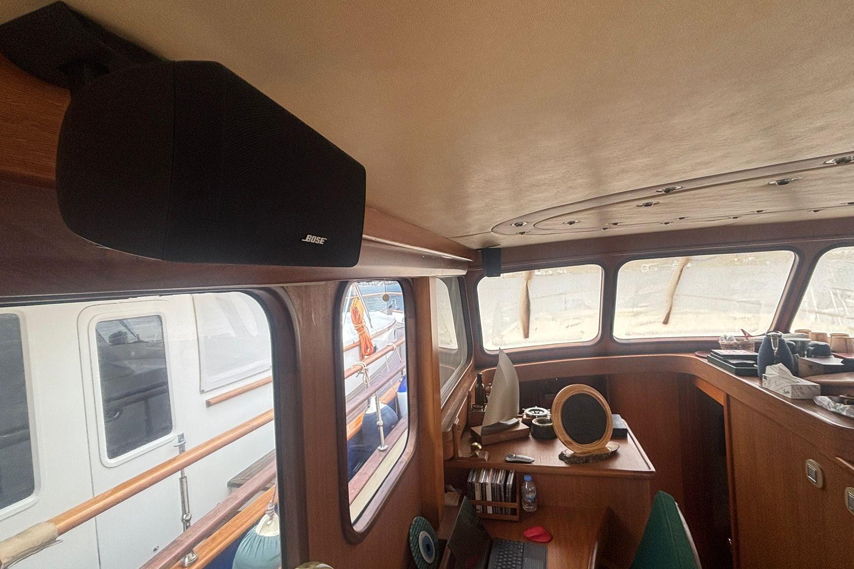 - Teak table for 6-8 people, teak chairs with armrests, 2x100W speakers, 2nd helm station, table for 6 people, half hardtop/openable awning, 2x100W Bose speakers, electric grill, wet bar, Vitrofrigo refrigerator