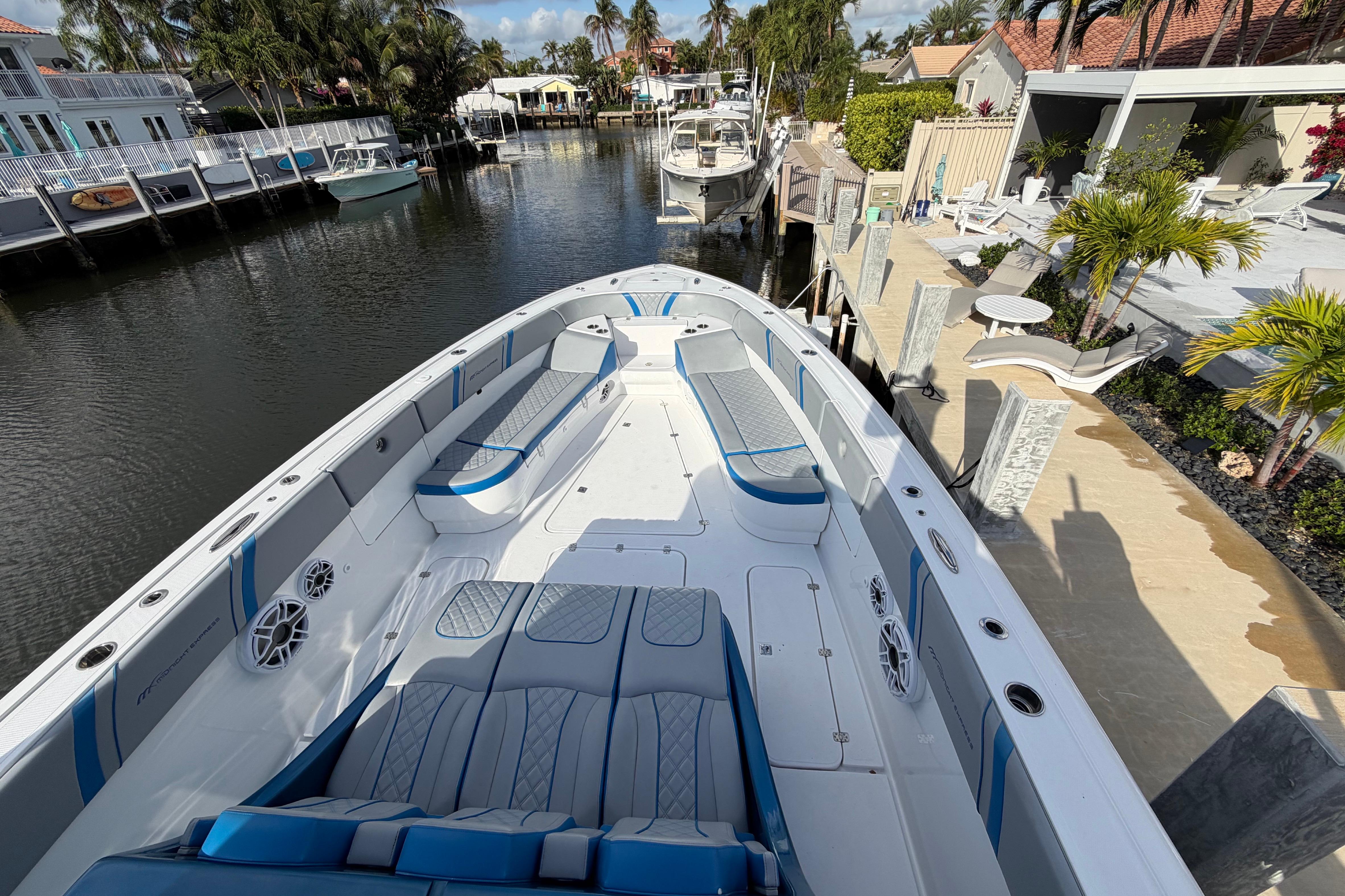 - 2021 43’ Open Midnight Express repowered in 2025 with quad 400 V10 Mercury motors