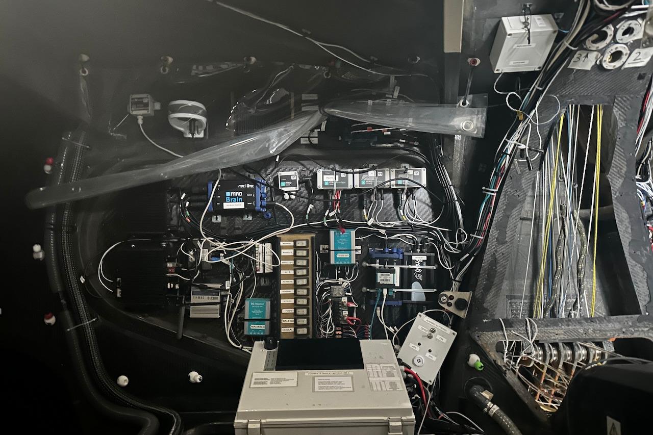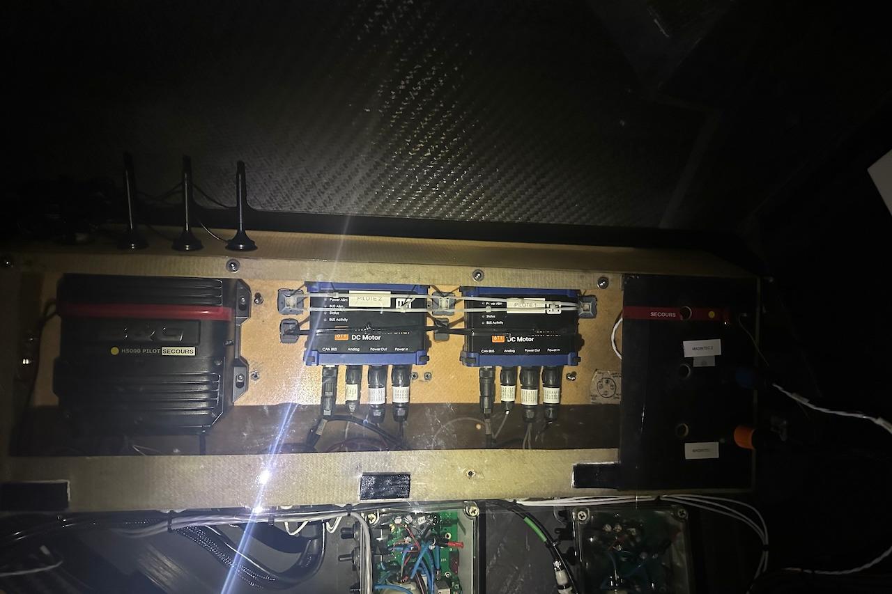 The electronics package is current and comprehensive: three independent Madintec autopilot systems with B&G H5000 emergency backup, SEA.AI anti-collision with masthead camera, Raymarine Quantum 2 radar with Axiom 9+ display, and Starlink fitted June 2024. Navigation instrumentation was recalibrated and updated throughout the 2024 campaign.