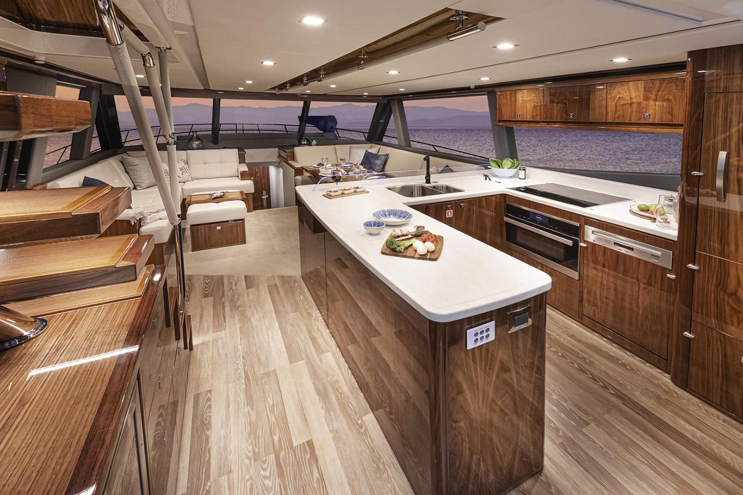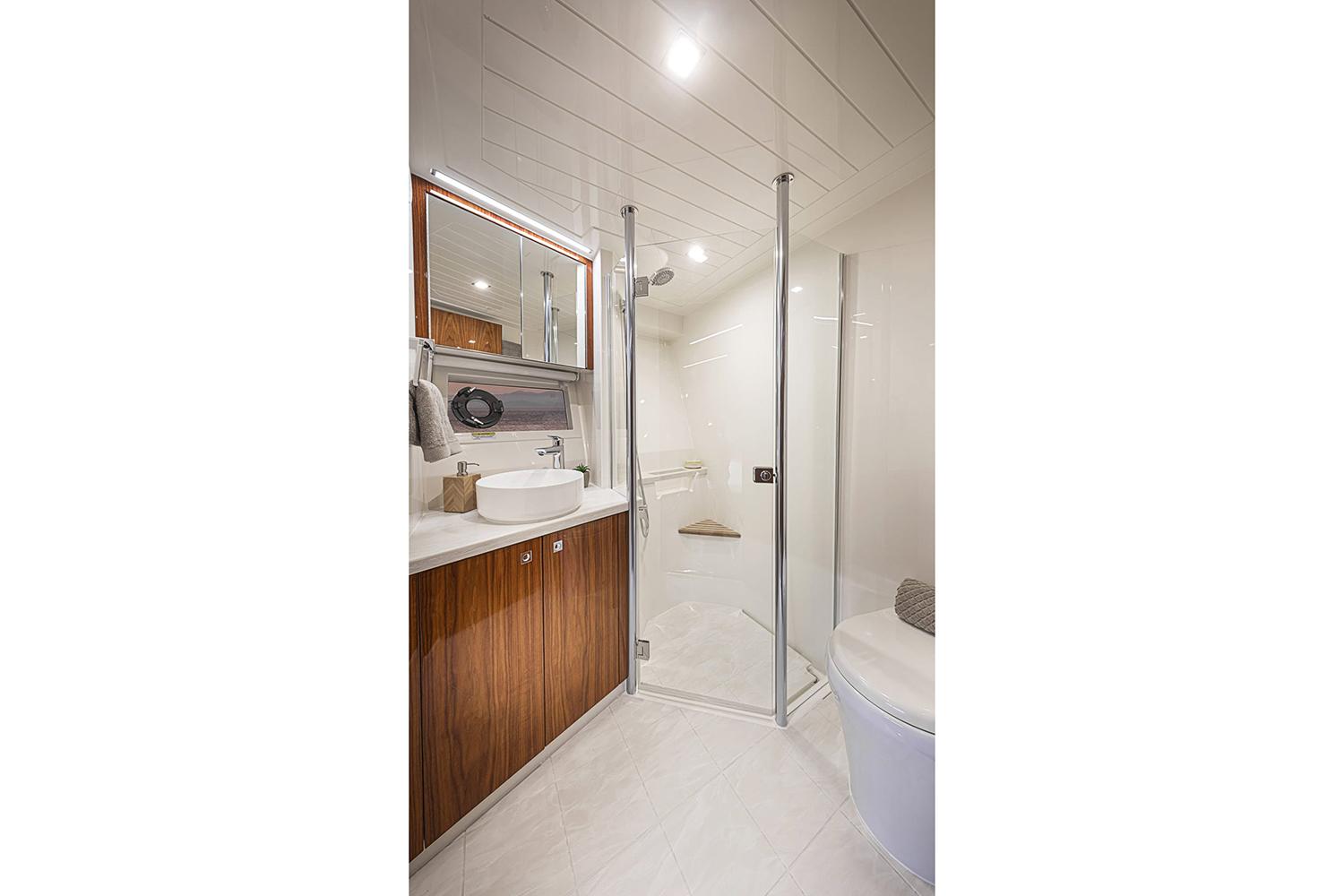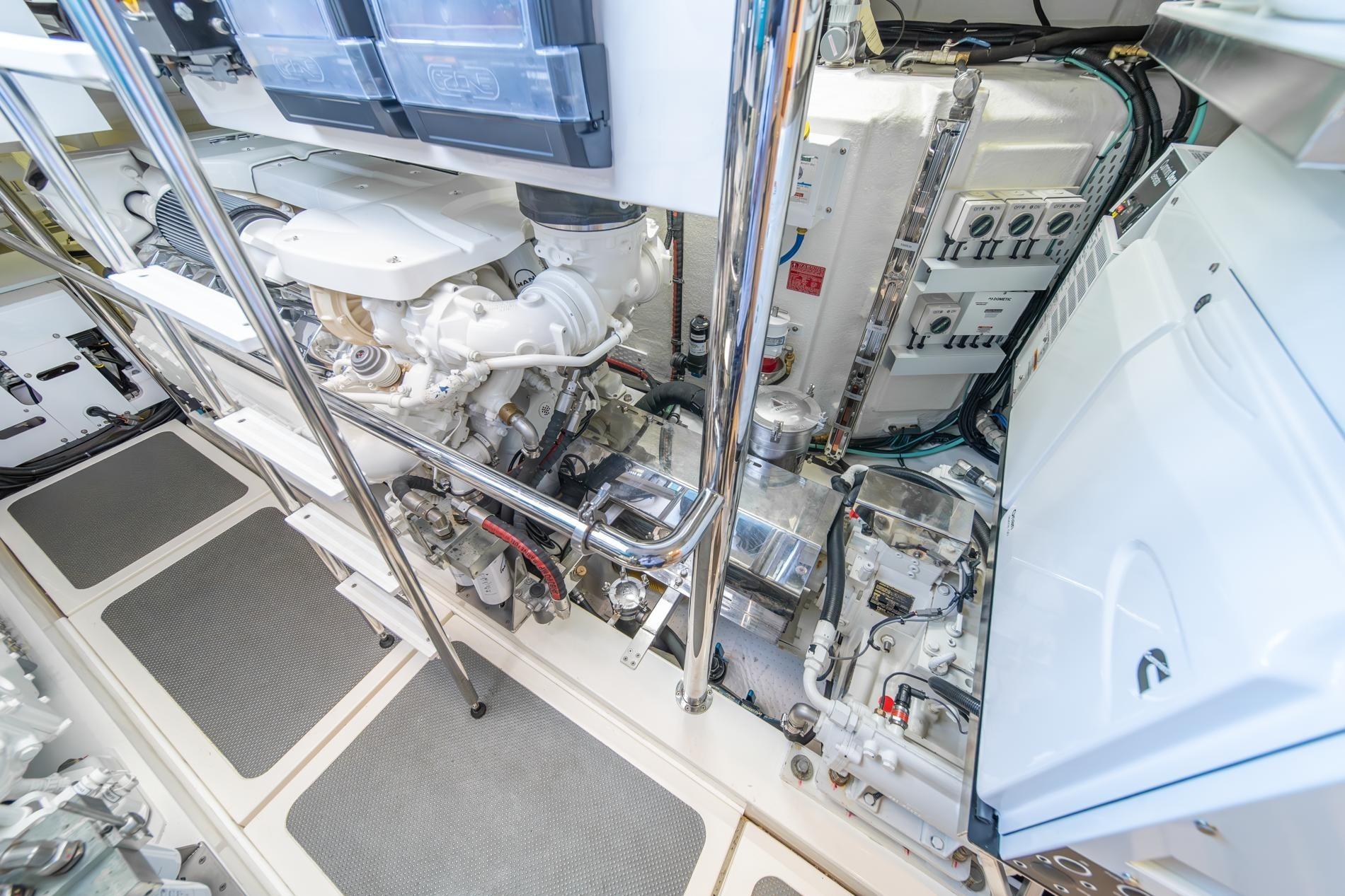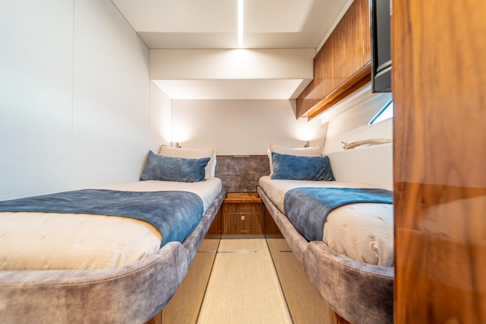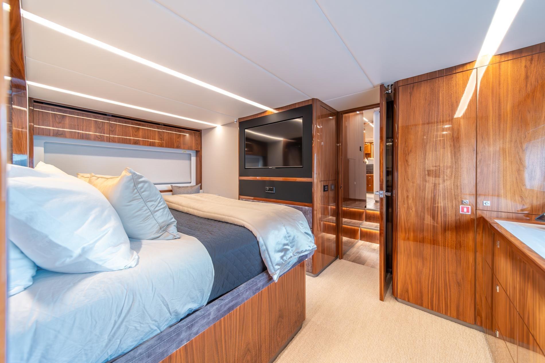 Migration, a highly customized Riviera 64 SMY, stands out as an exceptional yacht. Her upgraded MAN V12 engines deliver enhanced power, while the addition of a forward tender davit and secondary anchor & chain further optimize her performance. These upgrades allow Migration to achieve better balance and get on step more quickly, improving both speed and fuel efficiency. Additionally, the upgraded Seakeeper 18 stabilizer provides unmatched comfort by minimizing roll, especially in rough seas. With four spacious cabins, the yacht offers luxurious accommodation ideal for family and guests.