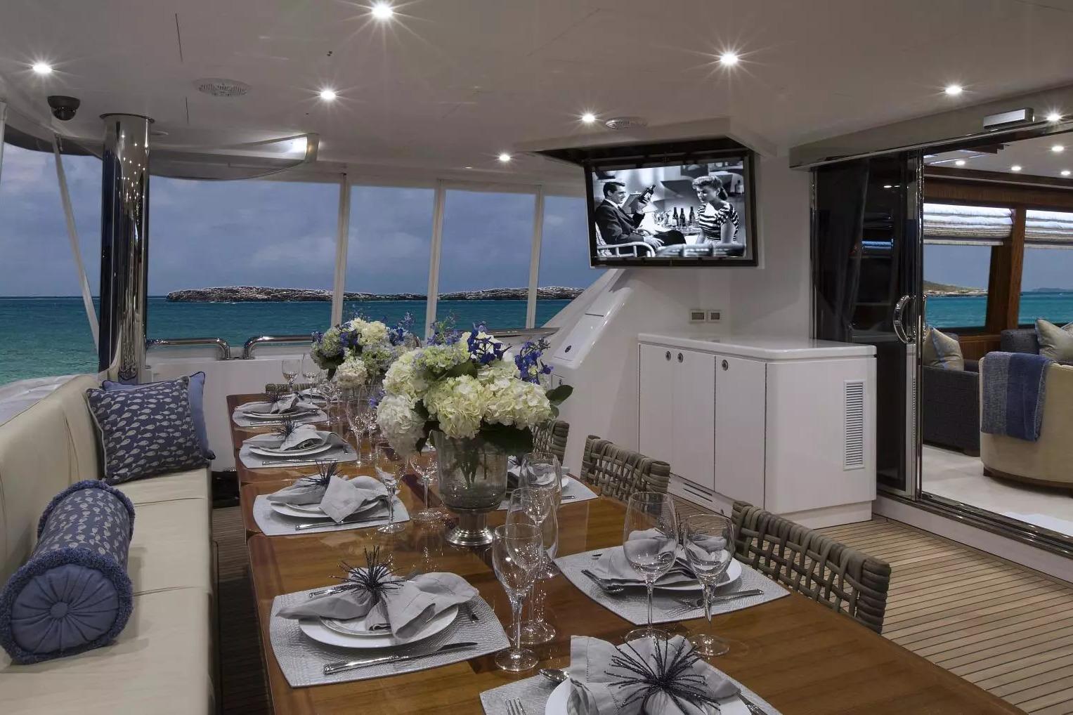 - Vessel-wide Samsung TV network (salon, aft deck, flybridge, staterooms, crew areas)