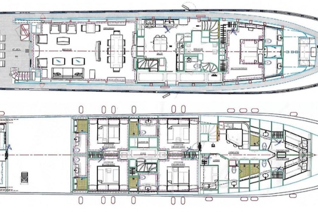 Accommodations include five luxurious staterooms for 10 guests, highlighted by a full-beam, on-deck master suite with California King berth and his-and-hers en-suite. Crew quarters accommodate up to five, ensuring professional service and privacy.