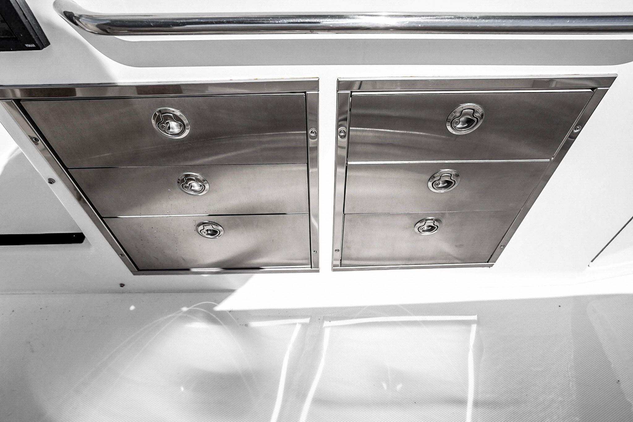 This vessel is powered by Quad Yamaha 450s, giving you incredible speed, reliability, and range for long runs offshore. With 171 hours on the Seakeeper, you’ll enjoy unmatched stability whether you’re trolling, drifting, or relaxing at the dock.