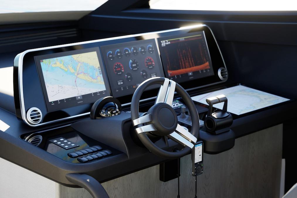 The Pearl 73 features a galley-aft layout, designed to create a natural connection between the cockpit and interior spaces.