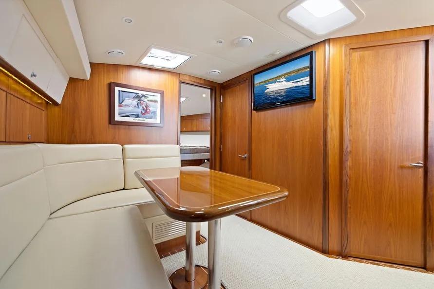 Careful planning and forethought go into the placement of every element in the cockpit - especially essentials such as the bait tank, tackle center and rod storage. Mezzanine seating provides a comfortable perch while watching the spread. Insulated fishboxes are molded into the sole and equipped with in-line macerators. Full-length piano hinges and rubber gaskets allow for a tight seal, to keep your catch fresher longer. Lures and rigging equipment are neatly organized, in a custom-designed tackle center at the rigging station. A number of additional options are also available.