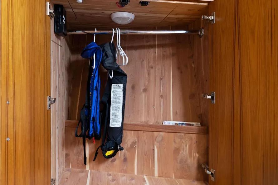 Sleeps two owners and guests in two staterooms plus dinette sleeps two for a total of four berths. One Head with shower. Step into a well appointed Cabin from the starboard side of the Helm Deck to find a very roomy Salon and Galley. Master Stateroom with island queen bed forward and ample storage. The large head can be accessed from either the Master Stateroom or the Salon. Comfortable L-shaped sofa pulls out to become a bed.Salon