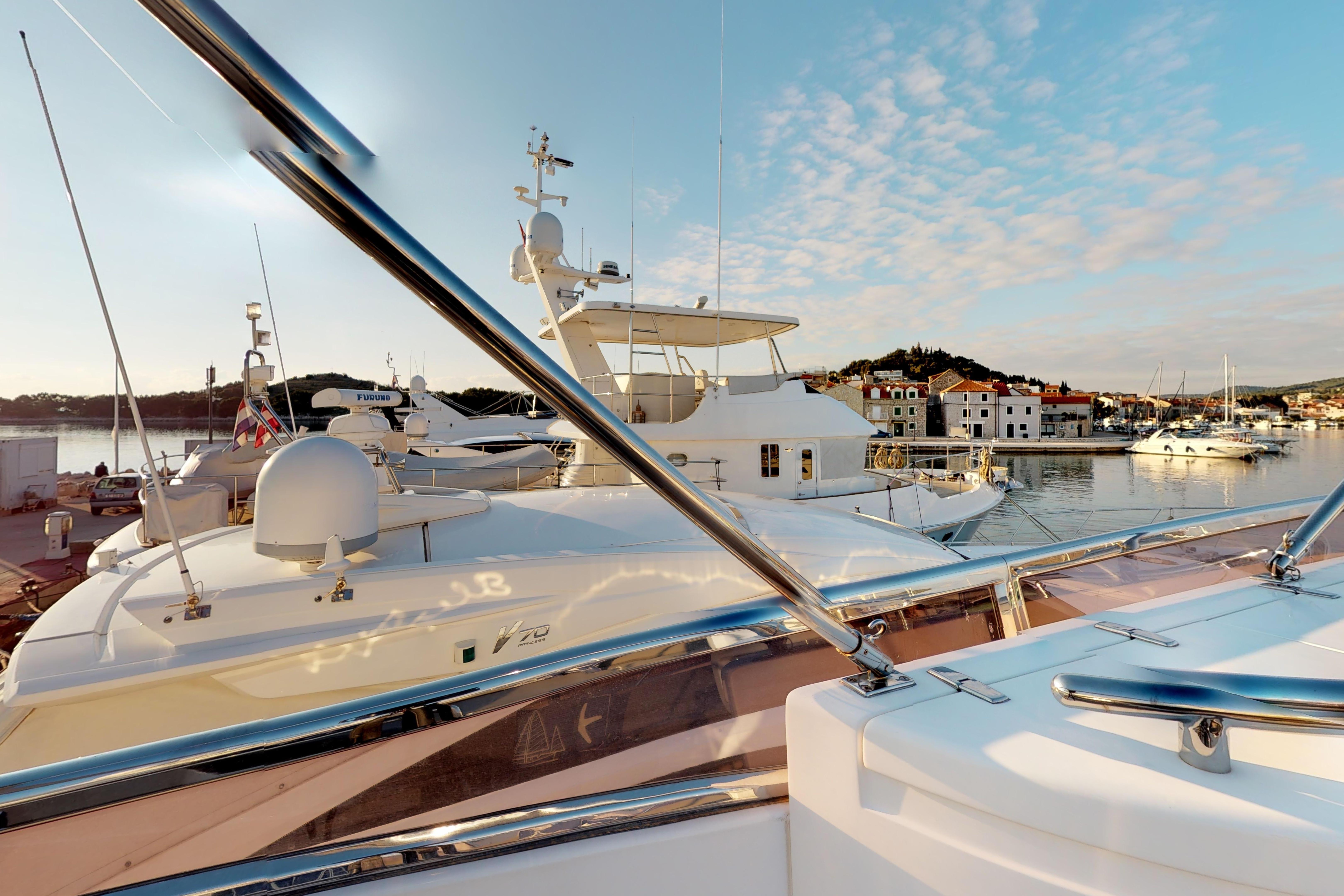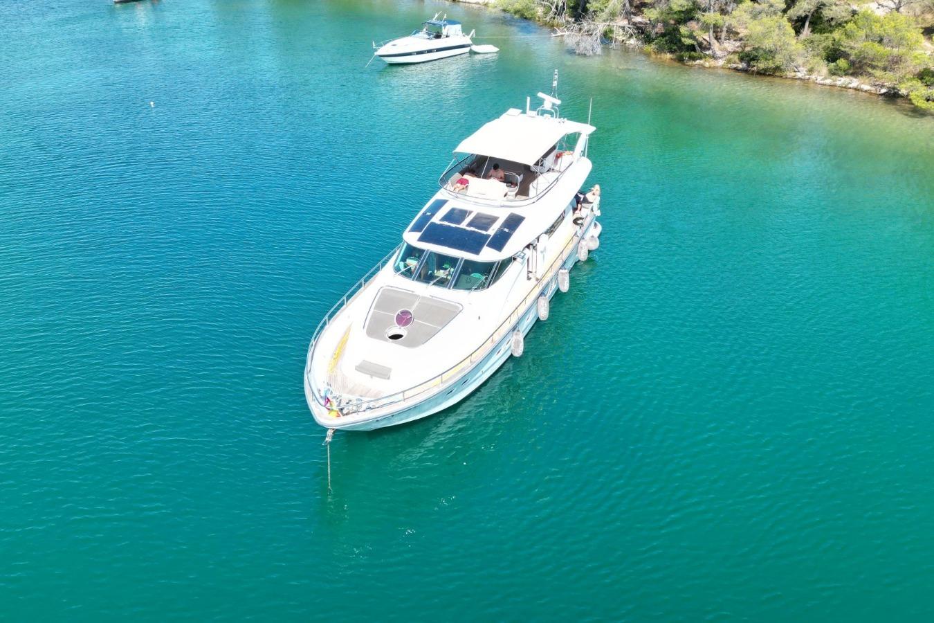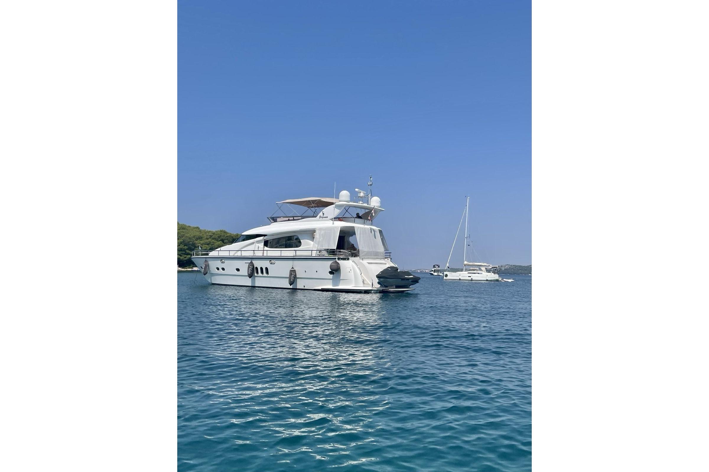 This Elegance 64 Yacht was launched in 2007 and since the day first, she has been maintained very well. With up to 6 guests in three cabins and a separate crew cabin, she offers enough space for every person on board. With her great flybridge, she will ensure complete comfort at sea. As solid as it gets.Many upgrades done 2022/2024/2025.