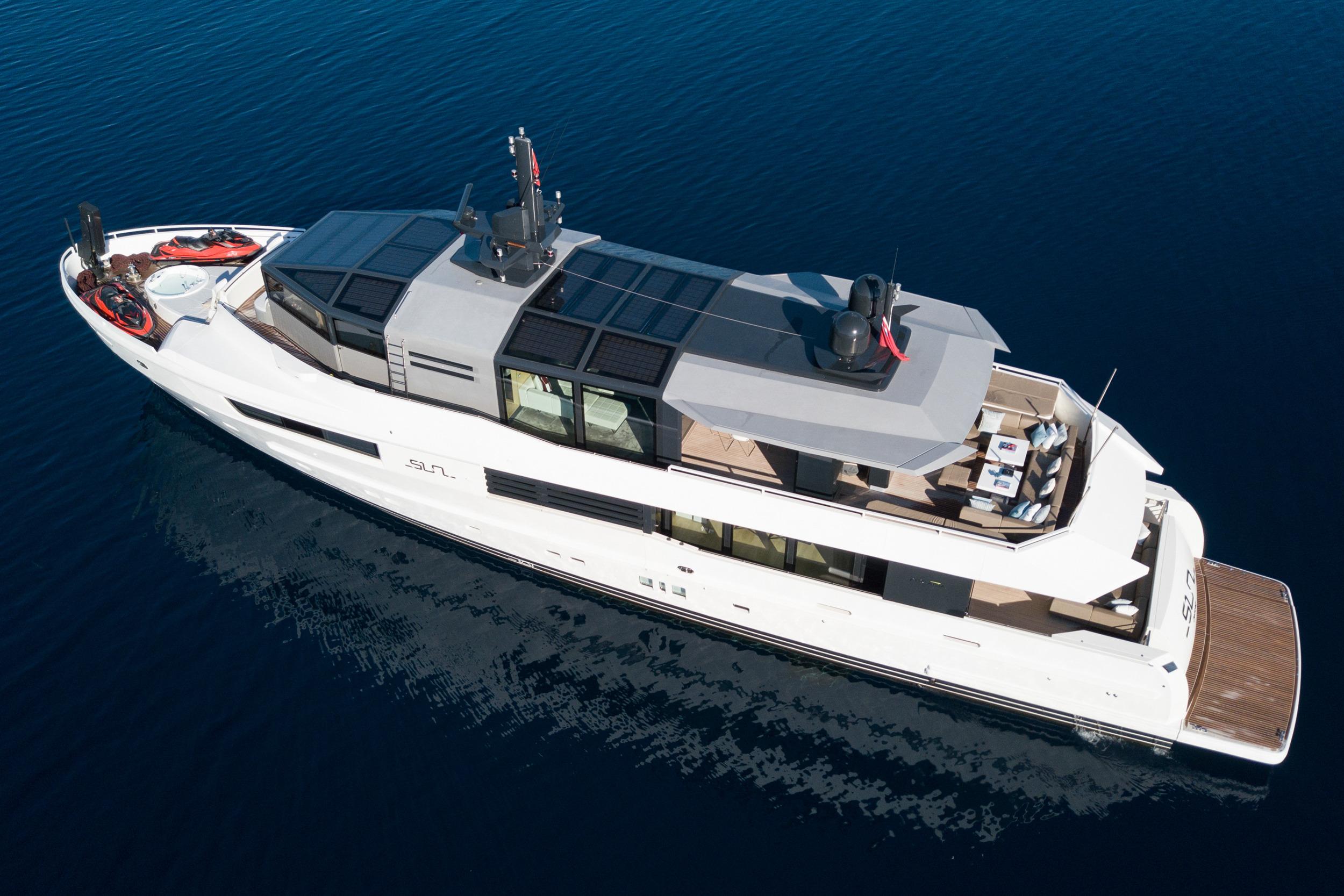 The 35m / 115′ Arcadia Yachts SUN offers a new way to experience the sea, enabling guests to enjoy the sea whilst respecting nature. With solar panels integrated into the superstructure which power utilities and services on-board, guests and sea life will appreciate complete tranquillity at anchor.