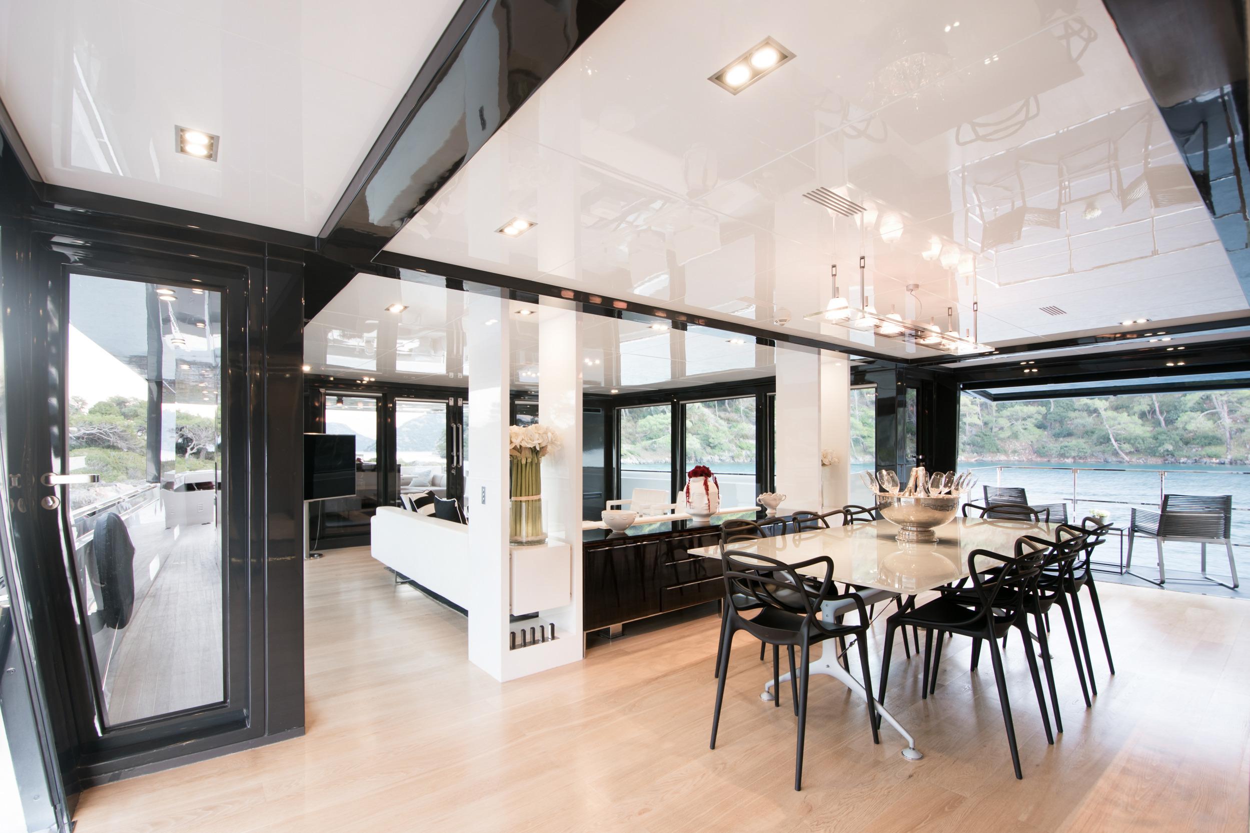 Welcoming you onboard is a spacious seating area leading into the open main salon and dining area, with floor length windows, large side openings and state of the art home cinema facilities.