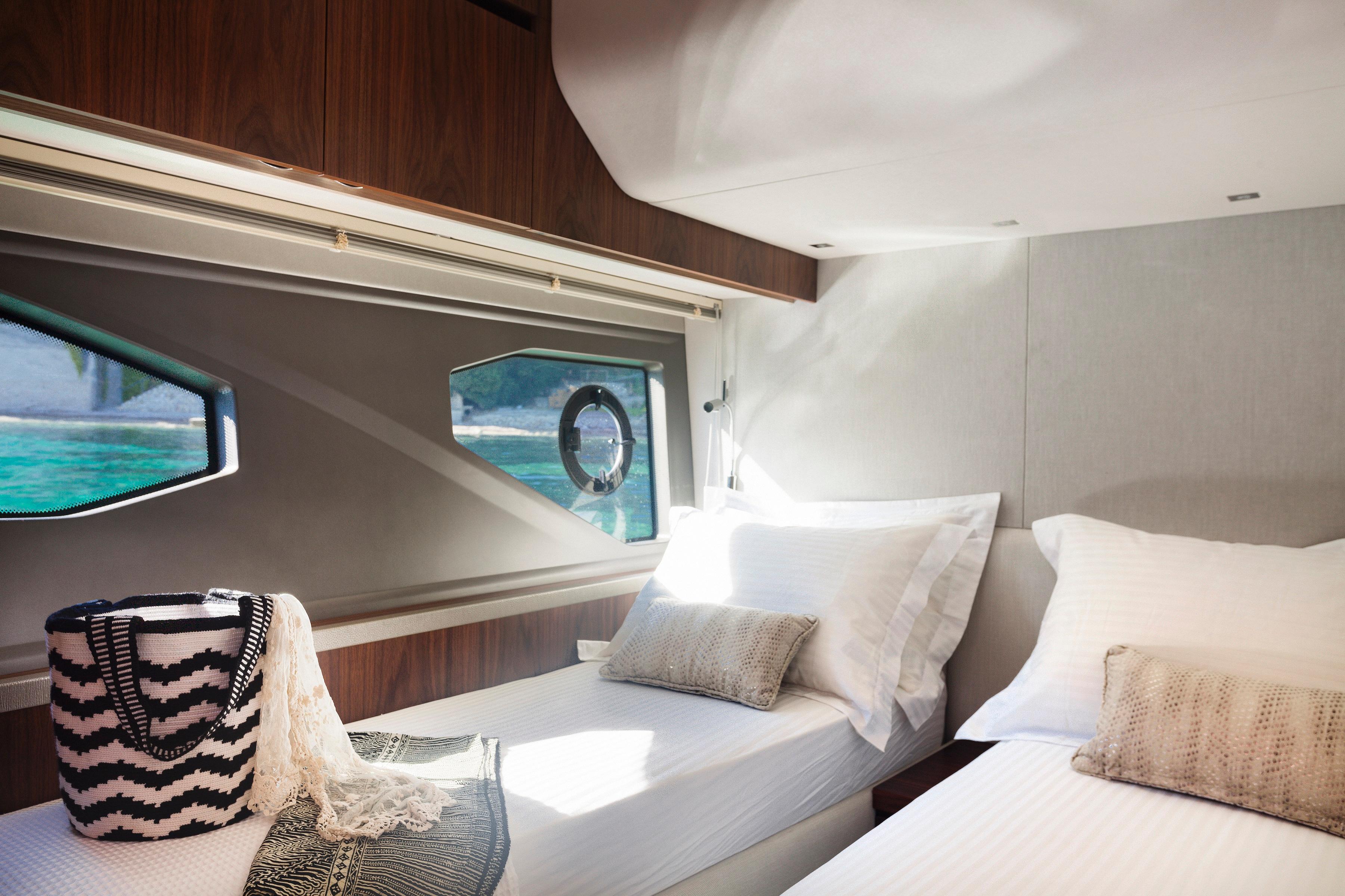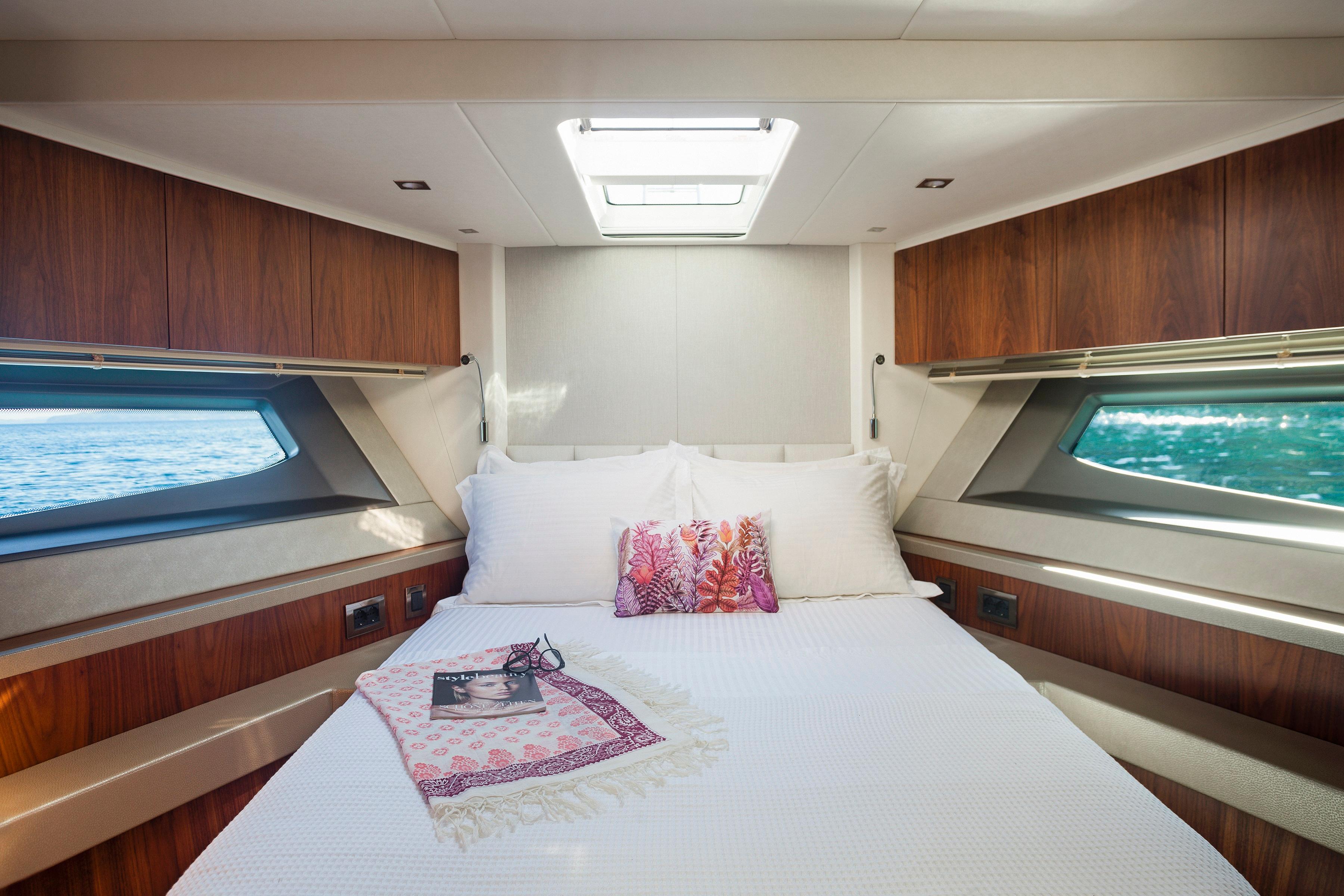 The Manhattan 52 is one of the most popular models that Sunseeker has ever built. She offers space, comfort and performance. With her twin D11 Volvo Penta engines she is able to reach speeds up to 32 knots! This great example of a well-maintained boat is fitted with the Platinum Mediterranean package which includes: Upgraded A/C, hydraulic telescopic gangway, hydraulic bathing platform, beach club, crew cabin fit installation with A/C, a Simrad Premium package, dishwasher, yacht controller and many more! The aft main deck has a fully equipped galley with an opening stern window and a fold-out bar top creating an ideal social bar to the cockpit with the bar stool. The boat sleeps 6 guests in two double and full beam cabins and one twin for guests. Do not miss this great opportunity! Viewings are highly recommended.