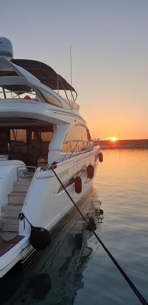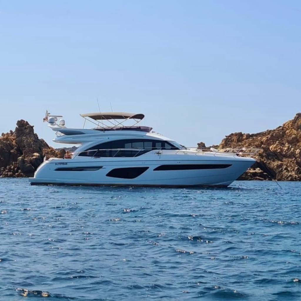 Ce magnifique Princess F62, millésime 2020, est actuellement disponible à la vente chez Santarelli Marine, à Ajaccio, en Corse. Livré neuf par nos soins à son propriétaire, ce yacht a toujours été suivi et entretenu exclusivement dans notre chantier.