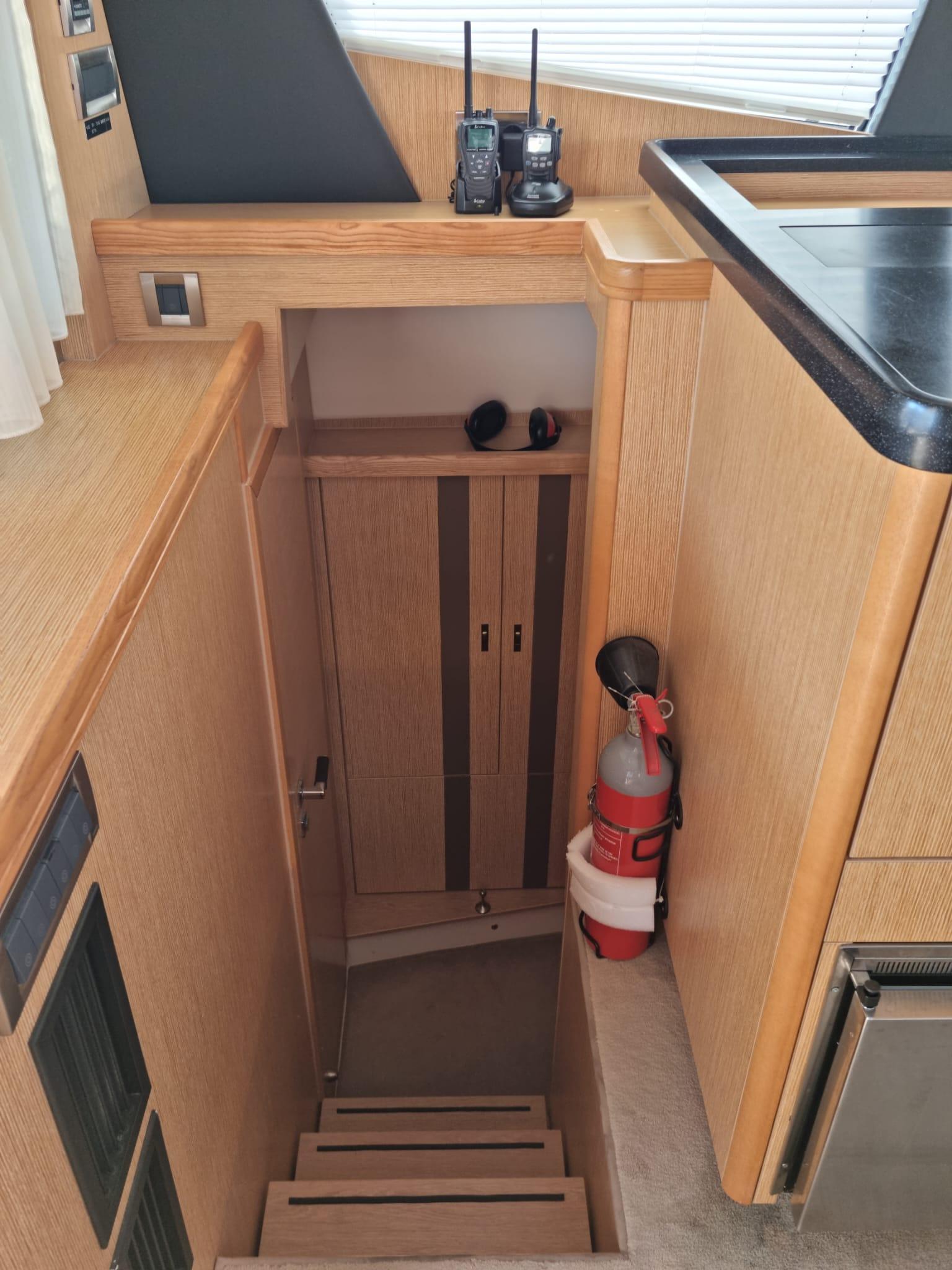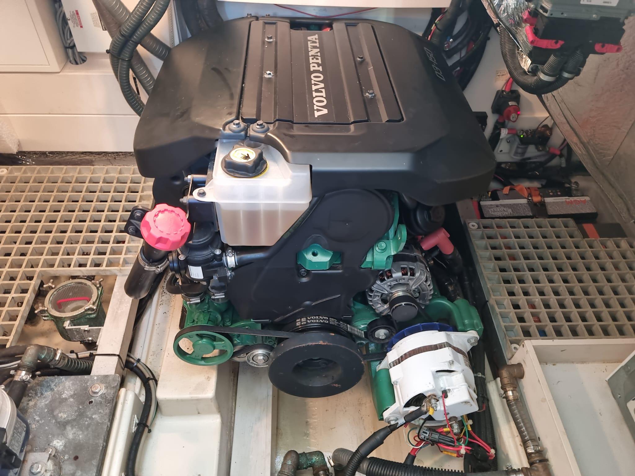 Generatore Fisher Panda 6kW (606 hrs), Caricabatterie Mastervolt 120A + Inverter 2500W, Voltaggi 12/24/220, Batterie dedicate per eliche di prua e di poppa + motore 90Ah + 8 batterie servizi 160Ah AGM (2024).