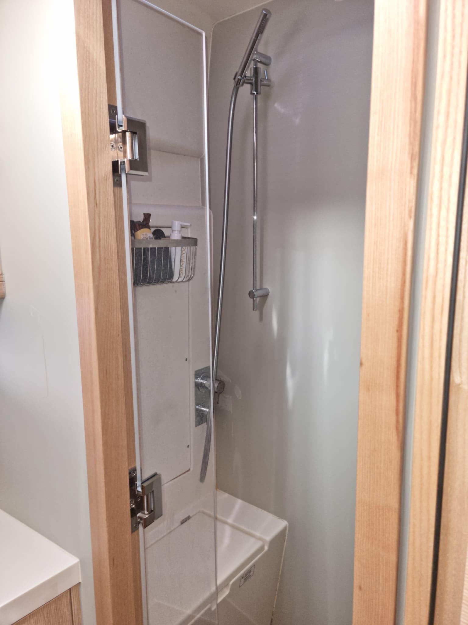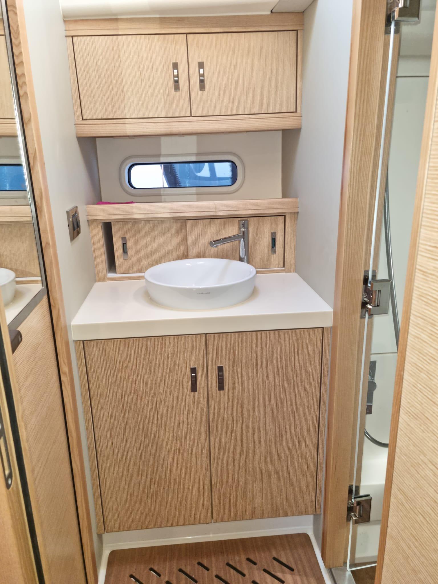 Armatoriale a prua con letto a isola matrimoniale e bagno privato con wc elettrico e doccia separata;