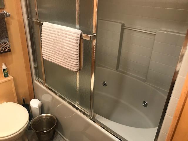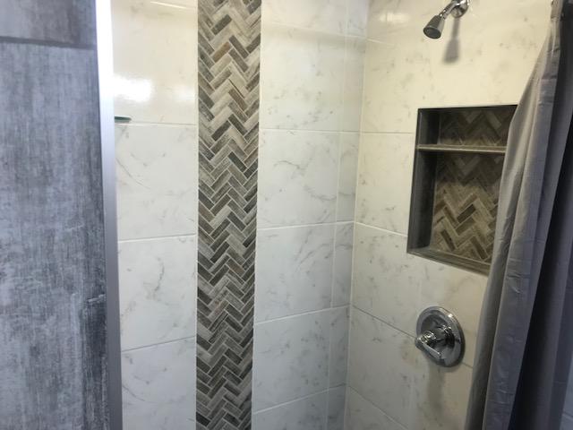 - Front bathroom walk in tiled shower with tile flooring