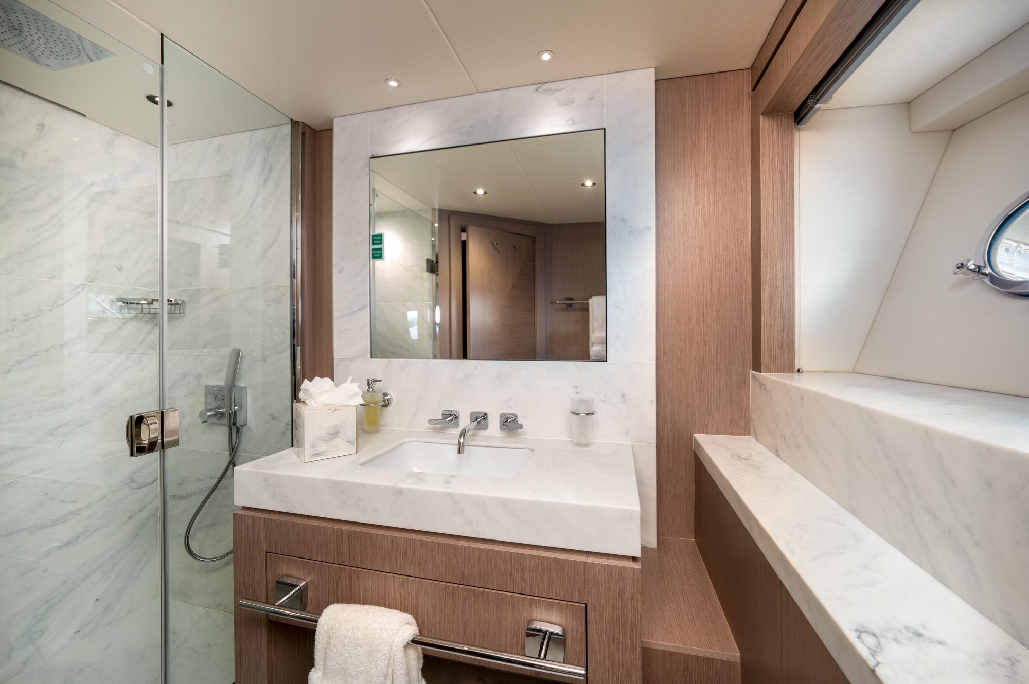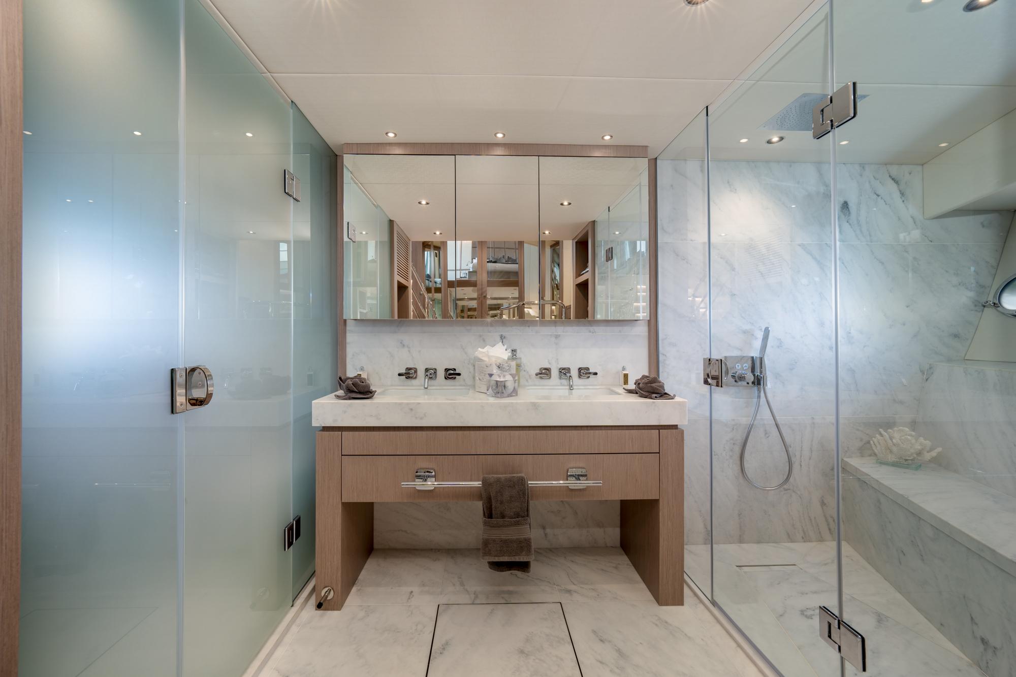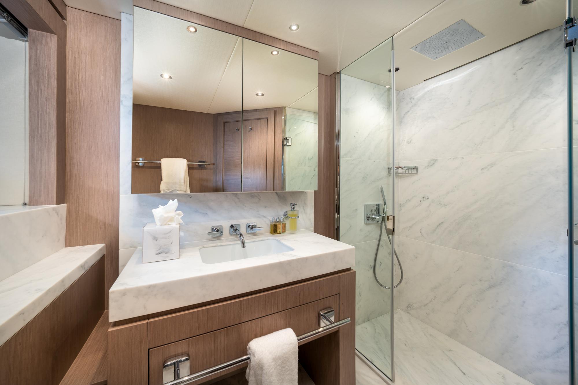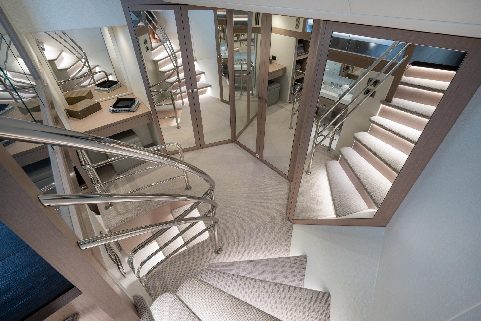 Saloon Samsung 55" 4K UHD Television on rise and fall mechanism with a Blu-ray player. 5:1 system with Sonos Playbar and Sonos Subwoofer. B&W CCM362 rear speakers with Sonos connect Amp. Apple TV. Master stateroom Samsung 55" 4K UHD Television. Blu-ray player. 5:1 system with Sonos Playbar and Sonos Subwoofer. B&W CCM362 rear speakers with Sonos connect Amp. Apple TV. Lower Forward VIP stateroom Samsung 55" 4K UHD Television. Blu-ray player. 5:1 system with Sonos Playbar and Sonos Subwoofer. B&W CCM362 rear speakers with Sonos connect Amp. Apple TV. (On 5 cabin layouts the above is deleted for the statement below) Aft Port and Starboard guest cabins Samsung 32" HD Television. Blu-ray player with Sonos Amp and 2 x Speakercraft WH6.1 speakers and Sonos Subwoofer. Apple TV. (On 5 cabin layouts the above is repeated in lieu of the Forward VIP stateroom) Crew Mess 24" HD Television with Fusion DVD/CD/FM Tuner and Bluetooth function and stereo speakers with Sonos connect. For each or the two crew cabins and the pilot house a Fusion CD/FM Tuner with Bluetooth function and stereo speakers. Aft Cockpit zone performance audio upgrade with Four Sonance Extreme Speakers with Sonos Connect and amplifier. Flybridge zone performance audio upgrade with Eight Sonance Extreme Speakers with Sonos Connect and amplifier. Fore deck zone performance audio upgrade with Two Sonance Extreme Speakers with Sonos Connect and amplifier. The exterior zoning audio to be linked to the Saloon AV system via Sonos with a tablet to control the zones.
