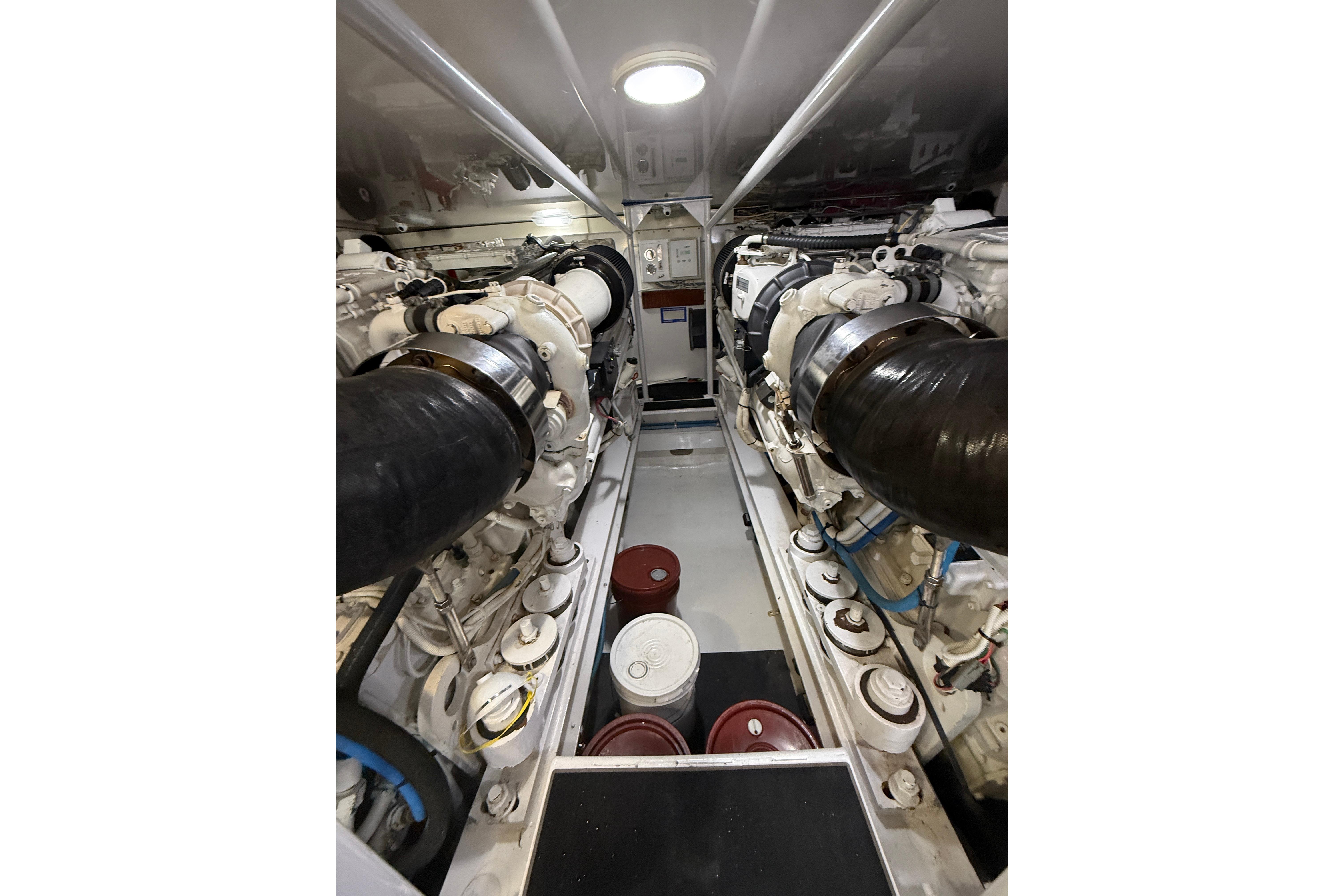 Yard Service February 2024 New bottom jobShafts dialedNew propellersNew ruddersCutlass bearingsMTU serviced to include heat exchangers, coolant pumps, raw water pumps. 2016 Painted in 2016 at American, Stuart Florida. Total refit, including addition of teak toe rail, and new electronics.Hull painted black, rub rail down. Note Lightning strikes in 2007 and a nearby strike in 2021 mandated the replacement of MTU ECMs on both engines for engine safety protocol. The total operational time as reported is 2723 hours for both main engines although the ECMs do not show these hours as they have been replaced. 2442 hrs reported at last incident which was more of a power surge as lightning hit a house nearby. Reported only the radar had an issue and no other issues reported with electronics/Garmin units, even in the tower. Cockpit Cockpit is complete with mezzanine seating, teak deck and covering boards, Bluewater fighting chair, Eskimo ice chipper, water maker, Garmin 7612 12 inch plotter, and engine room access. Salon Galley Kenyon 4 burner cooktopThree banks of drawer refrigeration, including 2 refrigerator banks, and 1 freezer bank Sharp Carousel microwave/convectionBosch washer/dryer (approx 2022 install)Central vac Master Stateroom To port is the master with a king berth positioned aft ship, hanging storage, abundant drawer, storage, en suite, head with headhunter, royal flush, toilet, linen, closet, separate shower, sink, and lighted vanities with stone top. The master also features a sitting room amidship down four steps complete with a couch, 20” LG TV, a desk with chair, and full hanging storage. LG 42” TVLG 36” TV at DinetteRTI IPads throughout for all lighting, TVs and Shade Controls if installed (Hunter‐Douglas blinds are not onboard) VIP Stateroom The VIP state room is located forward in the bow with a centerline queen, 24“ LG television, full hanging locker, ensuite head with lighted vanity, stone, top, headhunter, toilet, and separate shower. Crew/Third Stateroom Down the companionway is the day head to starboard with a stall shower, sink, light vanity, and access through to the crew/bunk stateroom to starboard. Bridge MTU mechanical throttle and gear over rides (2) ICOM IC‐M604Moritz general systems sensorFuruno Black Box Radar Furuno Black Box Sounder Side‐Power Bow thruster Controls (2) Garmin 8622 24” Plotters(2) Garmin 8622 22” Plotters U‐Line refrigerator SinkLG 32” TVGarmin Fusion stereo Aft Bridge Wheel/Control stationSide Power bow thruster controls Garmin 7612 12” Plotter Tower Garmin 7610 10” Plotter