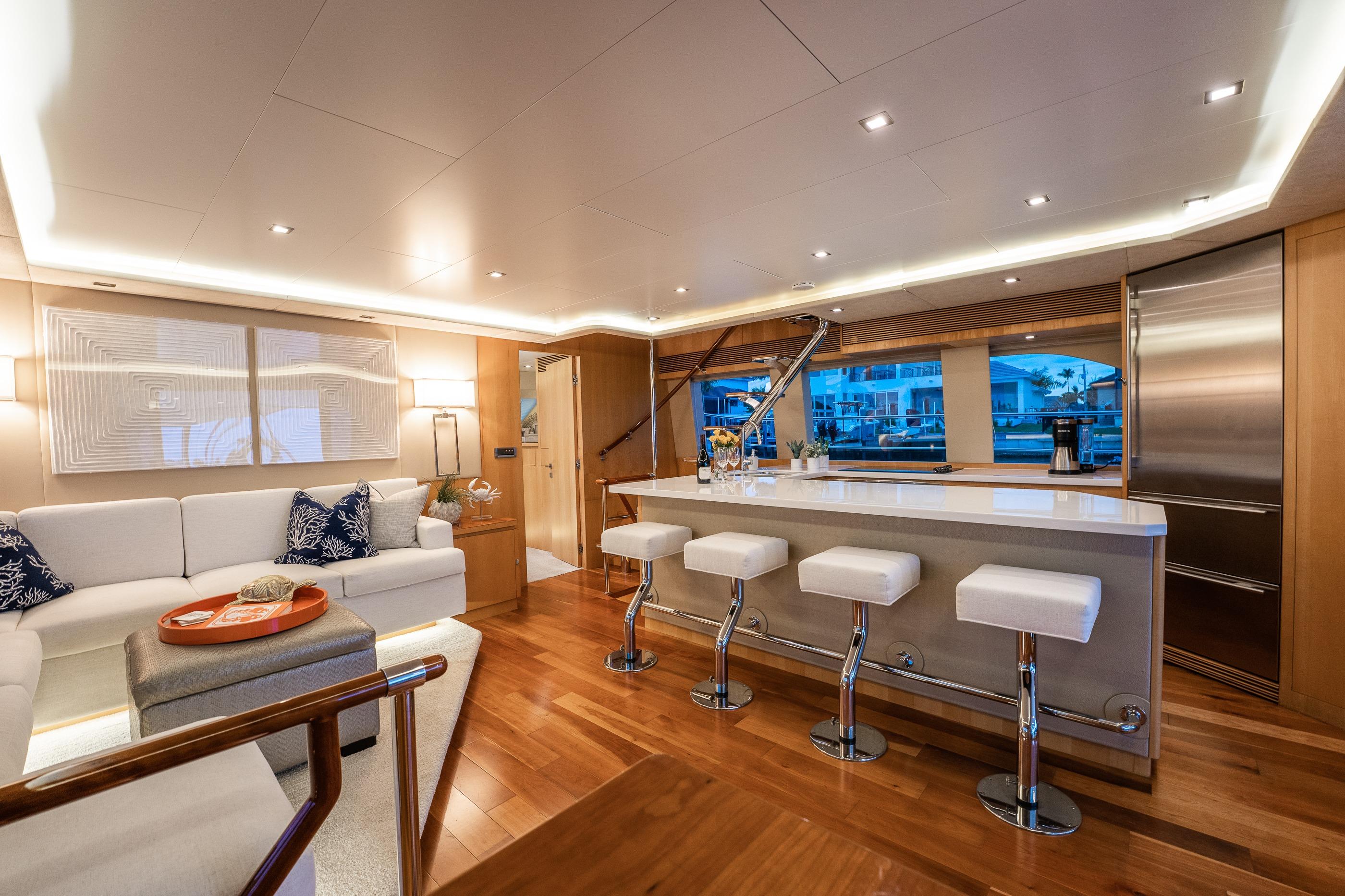 Comfortable stairs for access to aft deck with stainless handrails