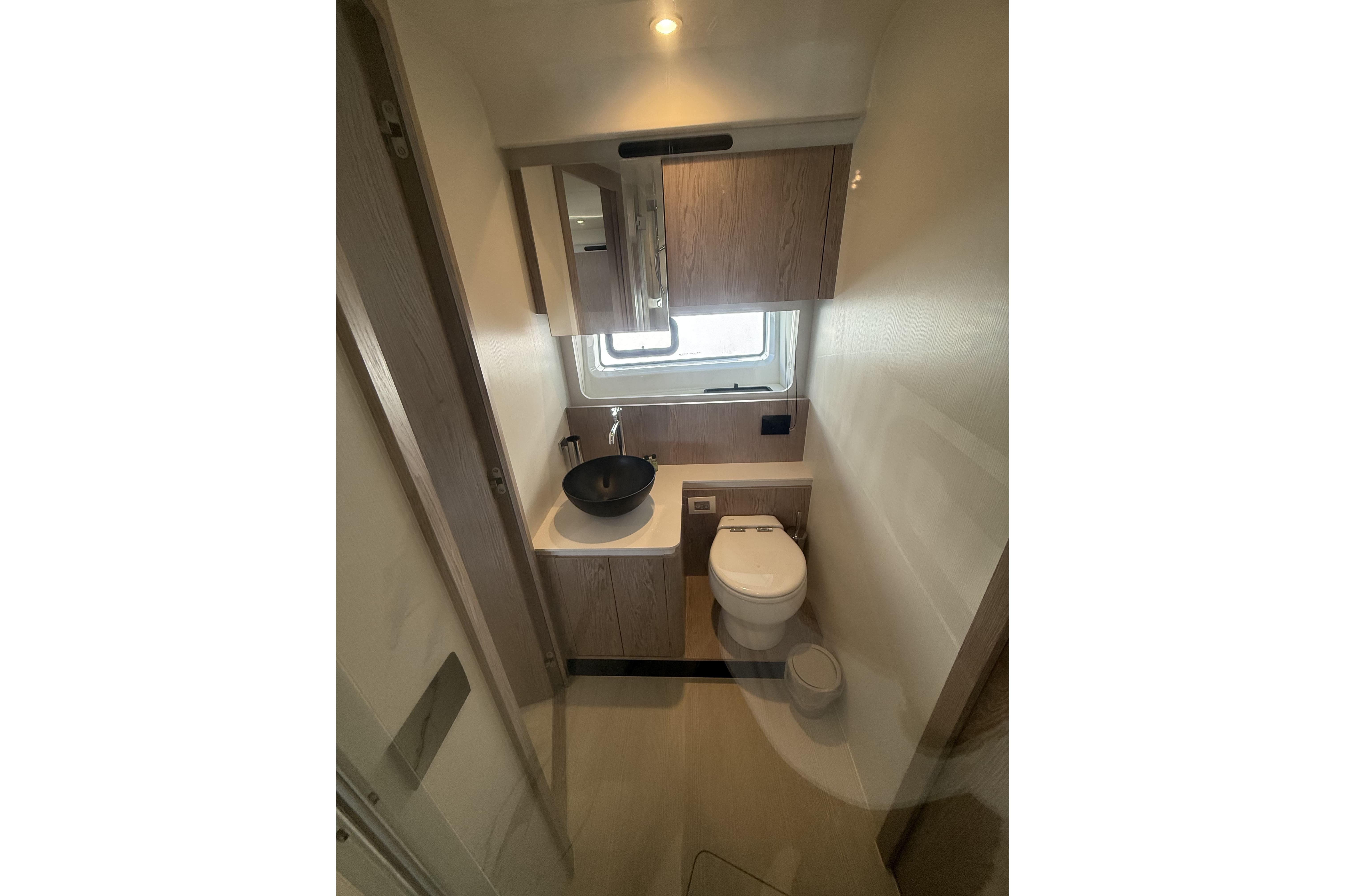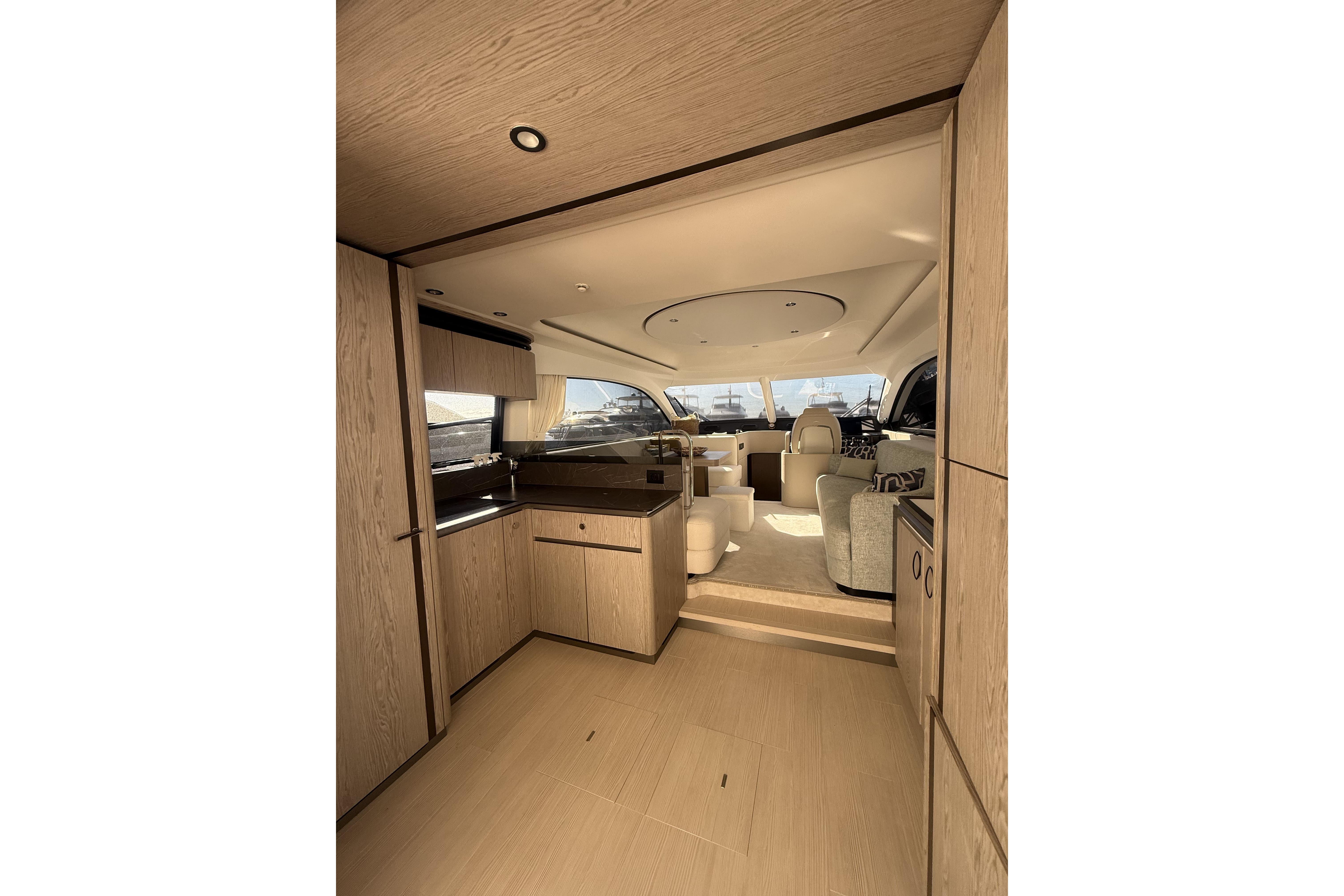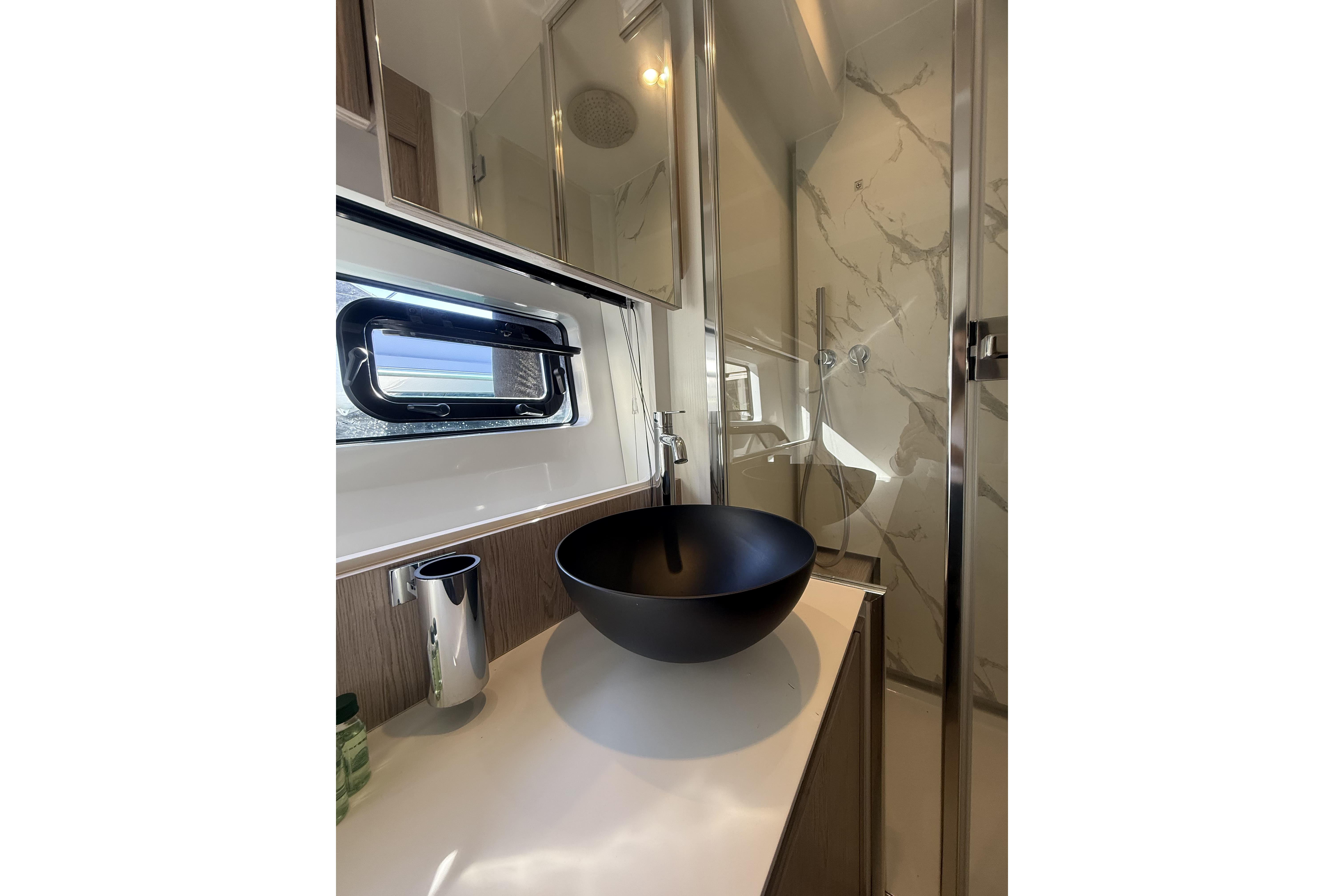 The salon is a hub of comfort and style, ideal for social gatherings or serene evenings, while the well-equipped galley invites culinary exploration.