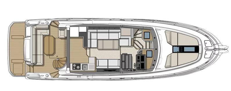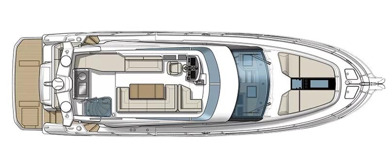 The stylish flybridge powerboat has inherited all the superb features of a successful range, including modern design, elegant lines, and a careful focus on details. It also features the iconic large porthole, which distinguishes the 15 m to 18 m class of yachts.