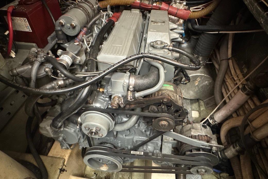 - Engine service: October 2024 - All collars removed and cleaned. New gaskets/seals. New hoses. New salt water & CW pumps. New turbos. All anodes replaced. Both engines painted.
