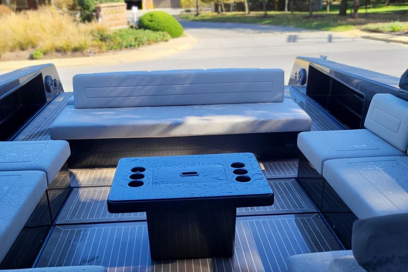 - Table Type: Composite white table on starboard side.