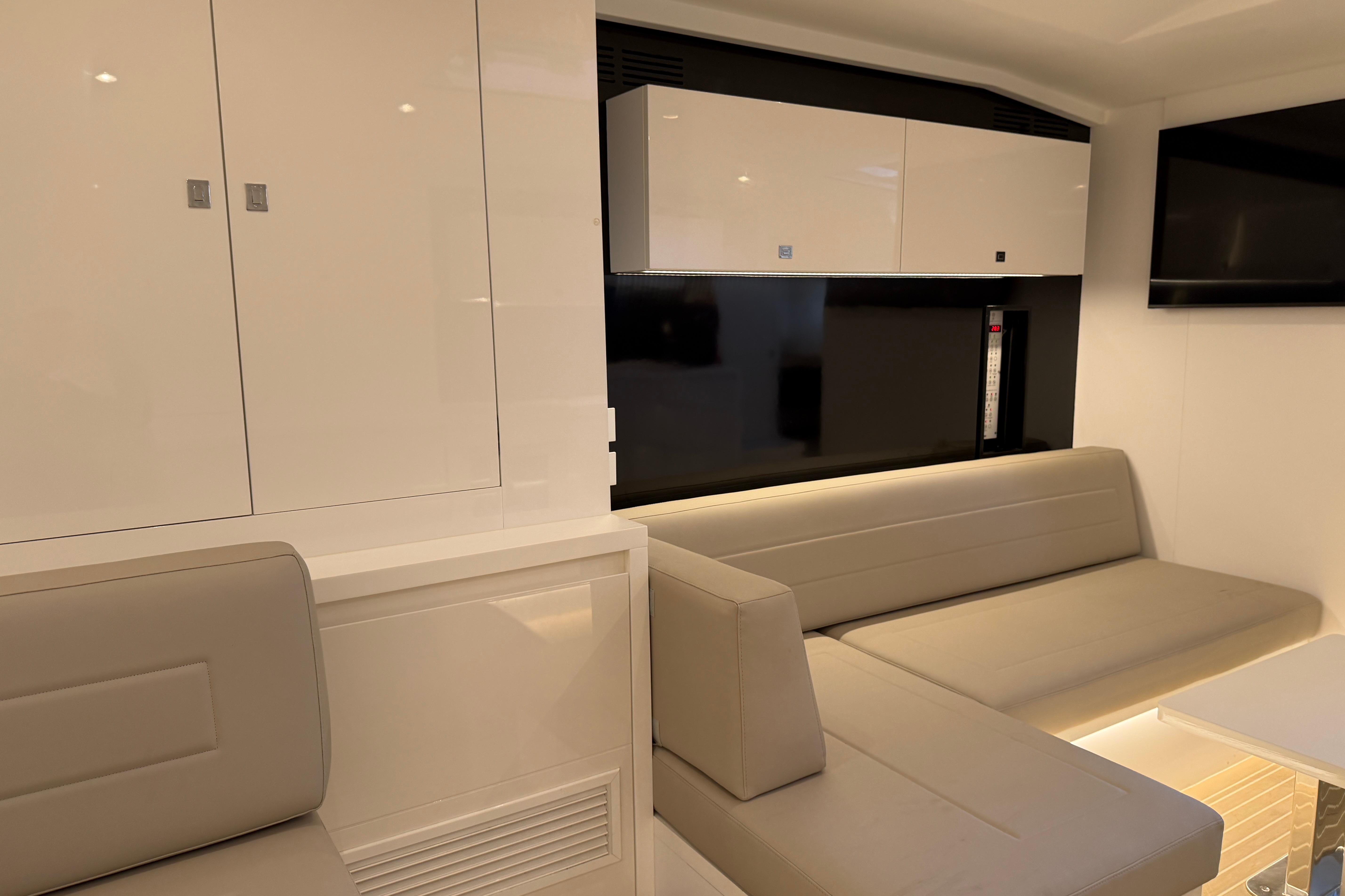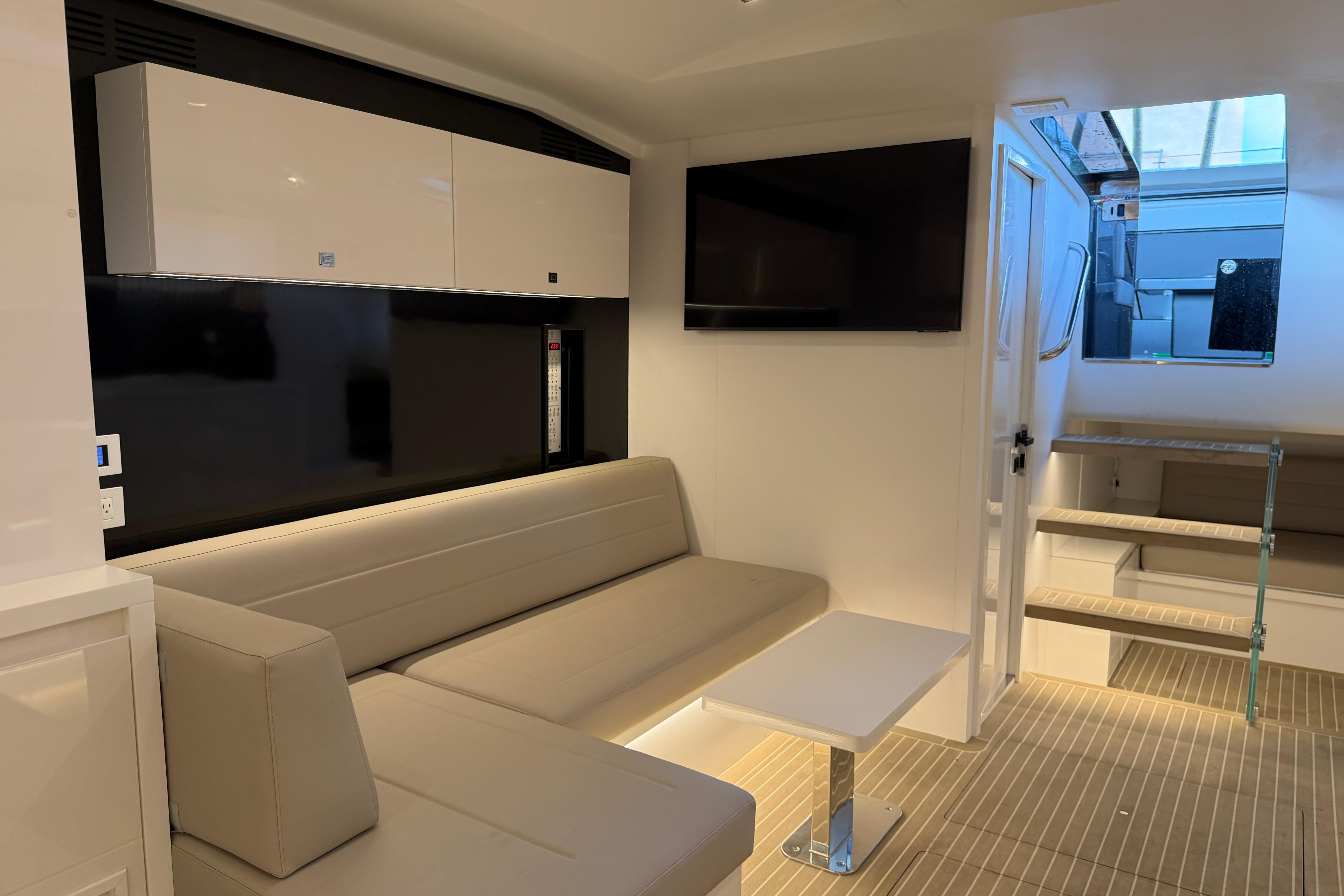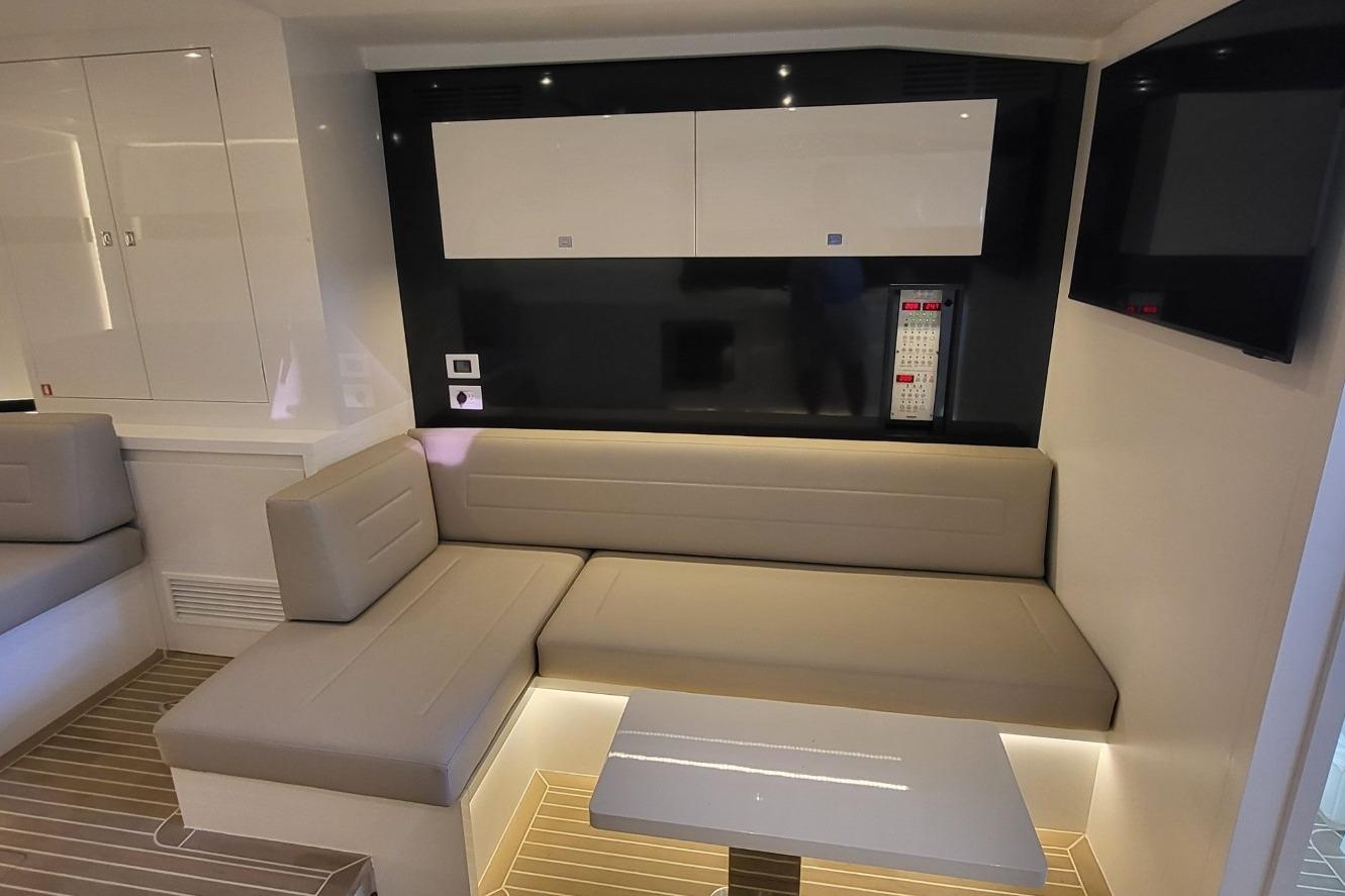 - Aft of salon there is "L" shaped beach seating.