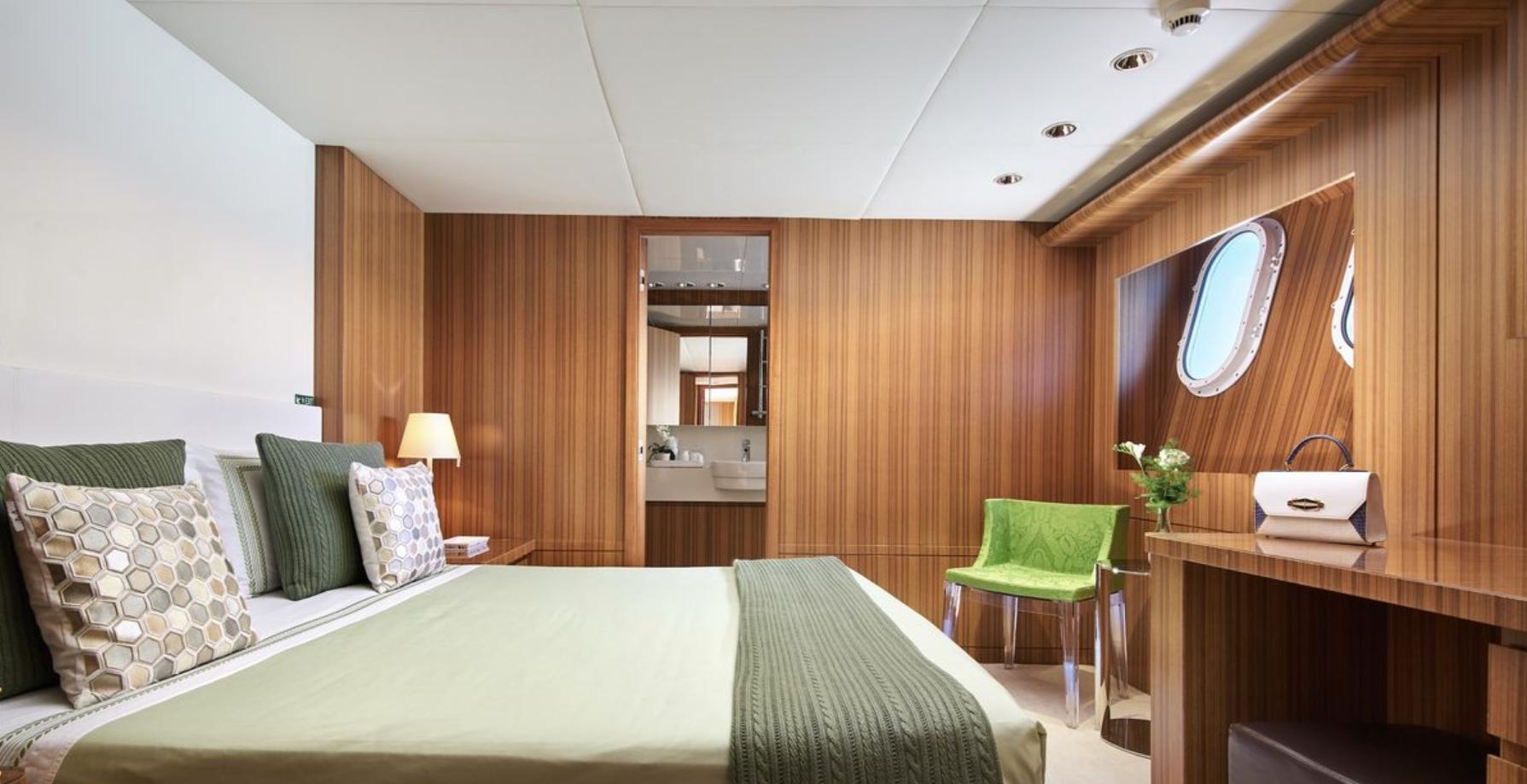 Built in aluminium by Italian yard Fittipaldi to a design by Luiz De Basto she was delivered in 2010. Accommodation is for 10 guests in five cabins comprising a main deck master suite, two doubles and two twins, all with entertainment centres, Samsung television screens and en suite bathroom facilities.