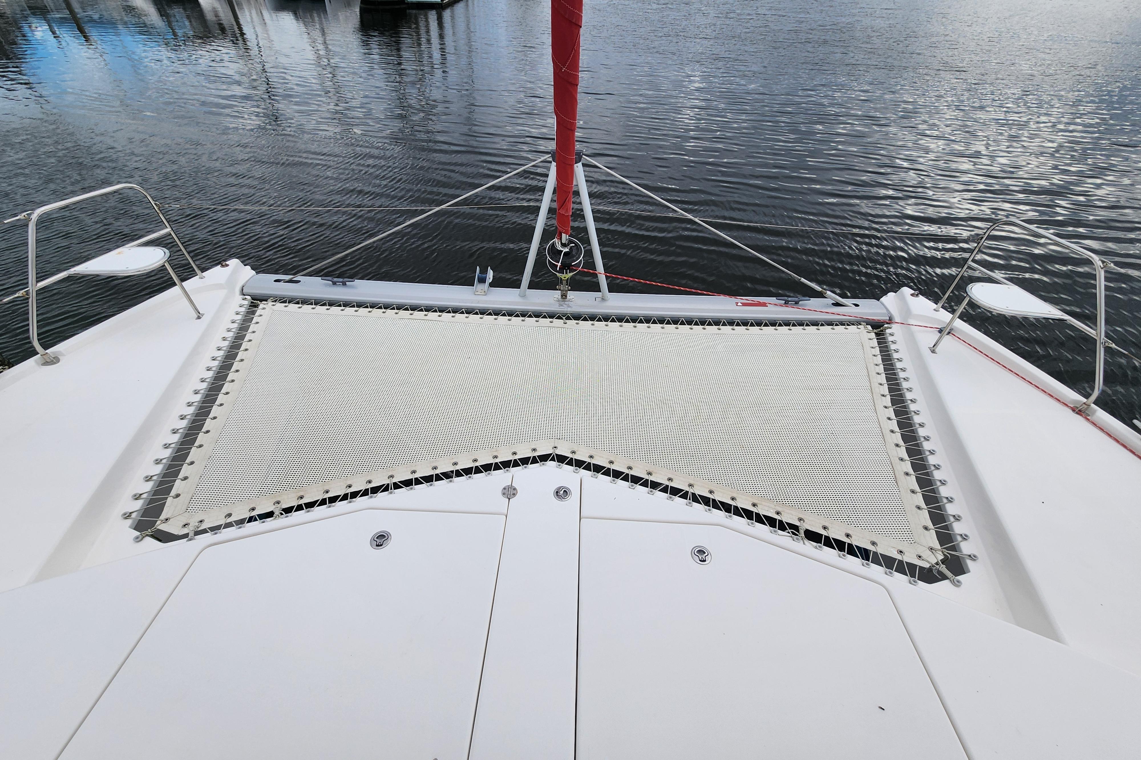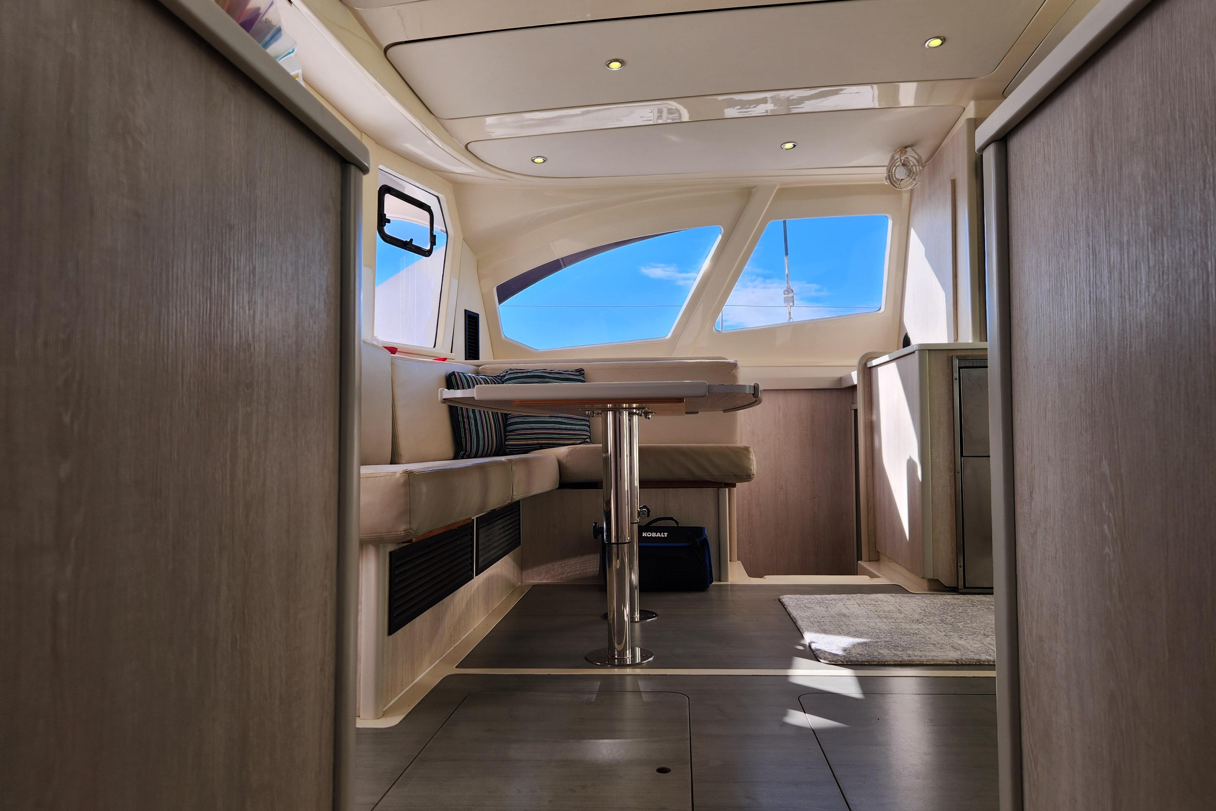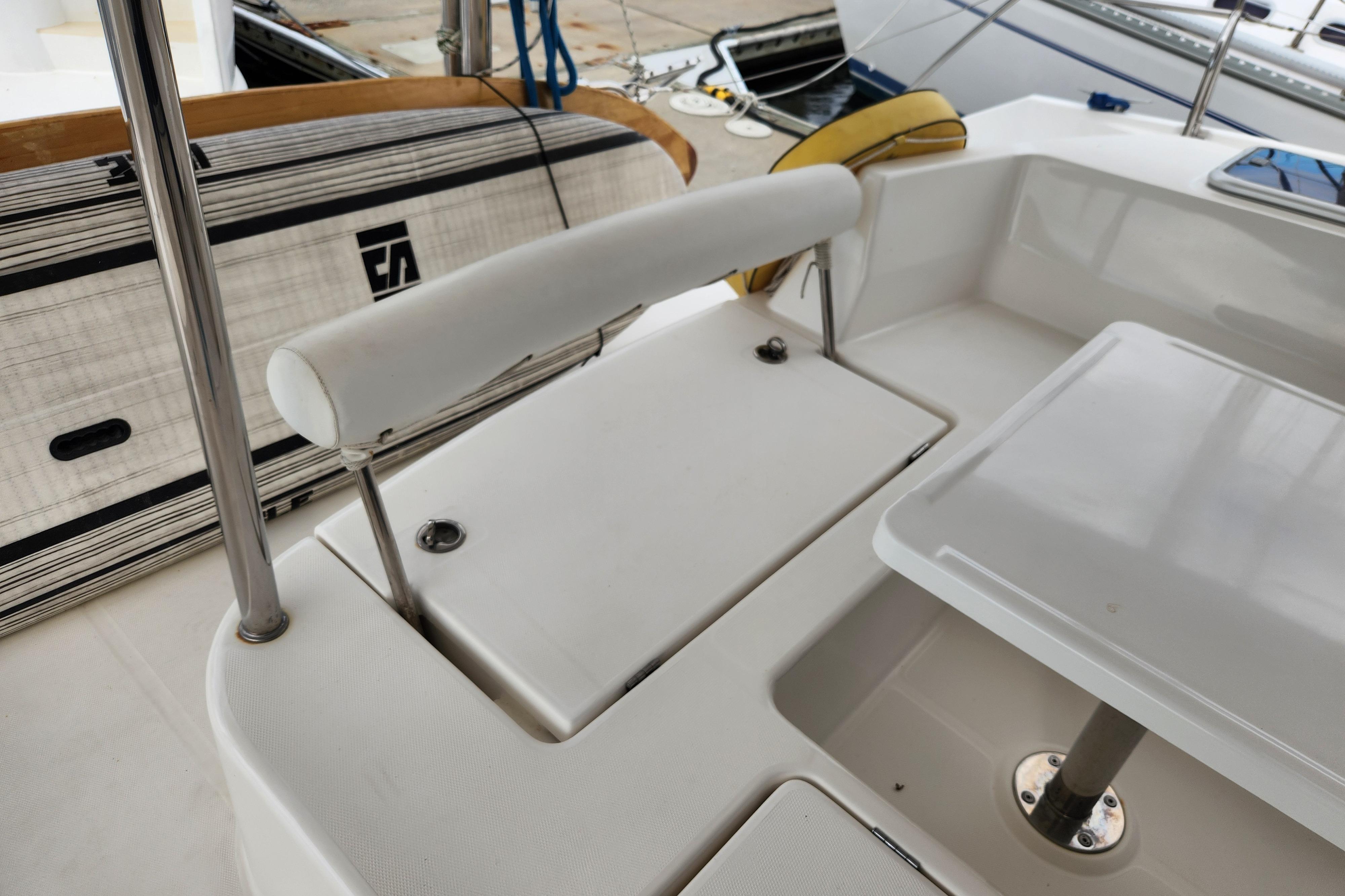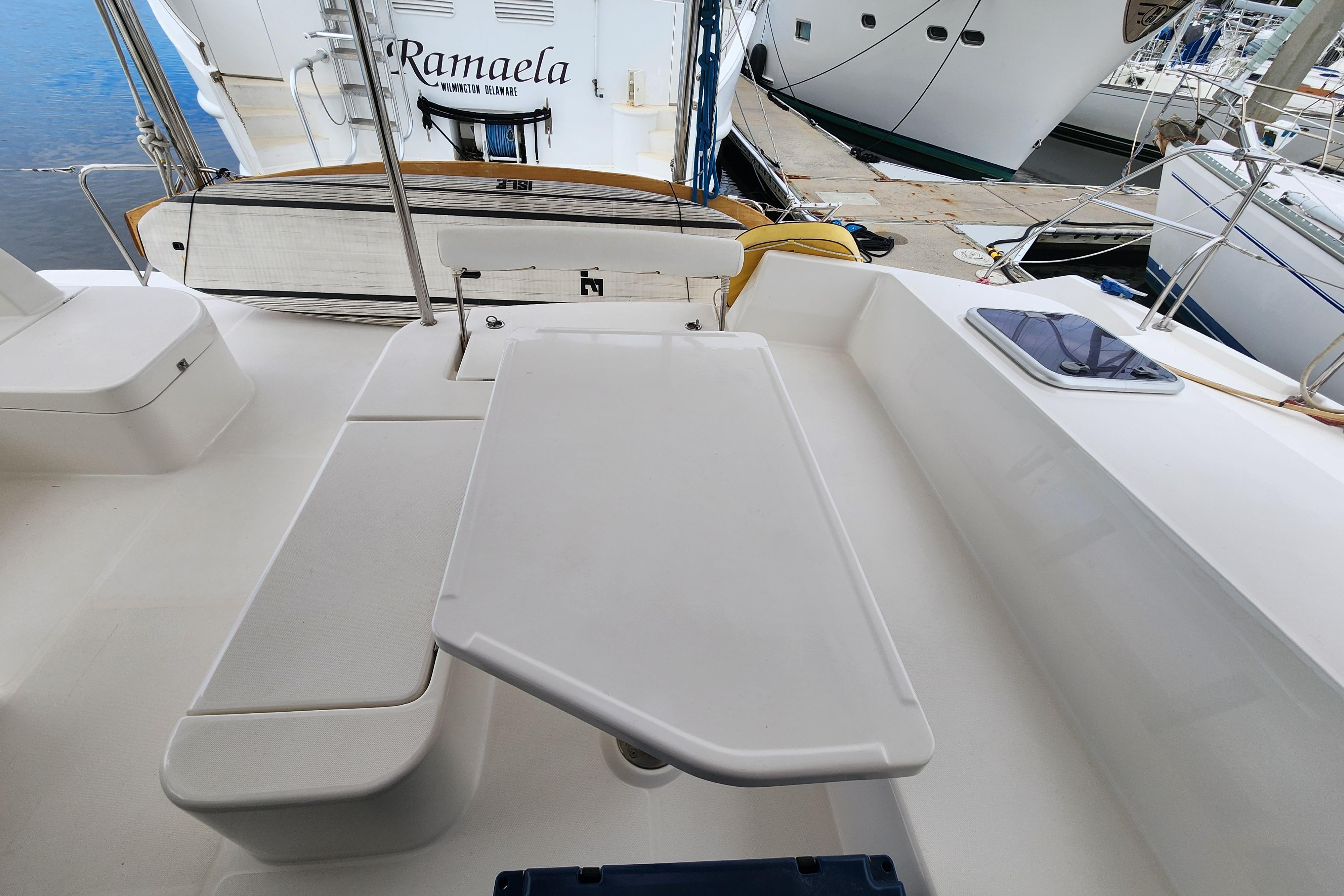 One of the many intriguing features this yacht offers is the forward cockpit with direct access from the saloon. While a forward cockpit is conventional on the modern cruising catamaran, the Leopard 44 distinctively offers an integral hardtop bimini, protecting the forward and aft cockpit, while also creating a comfortable outdoor living space.