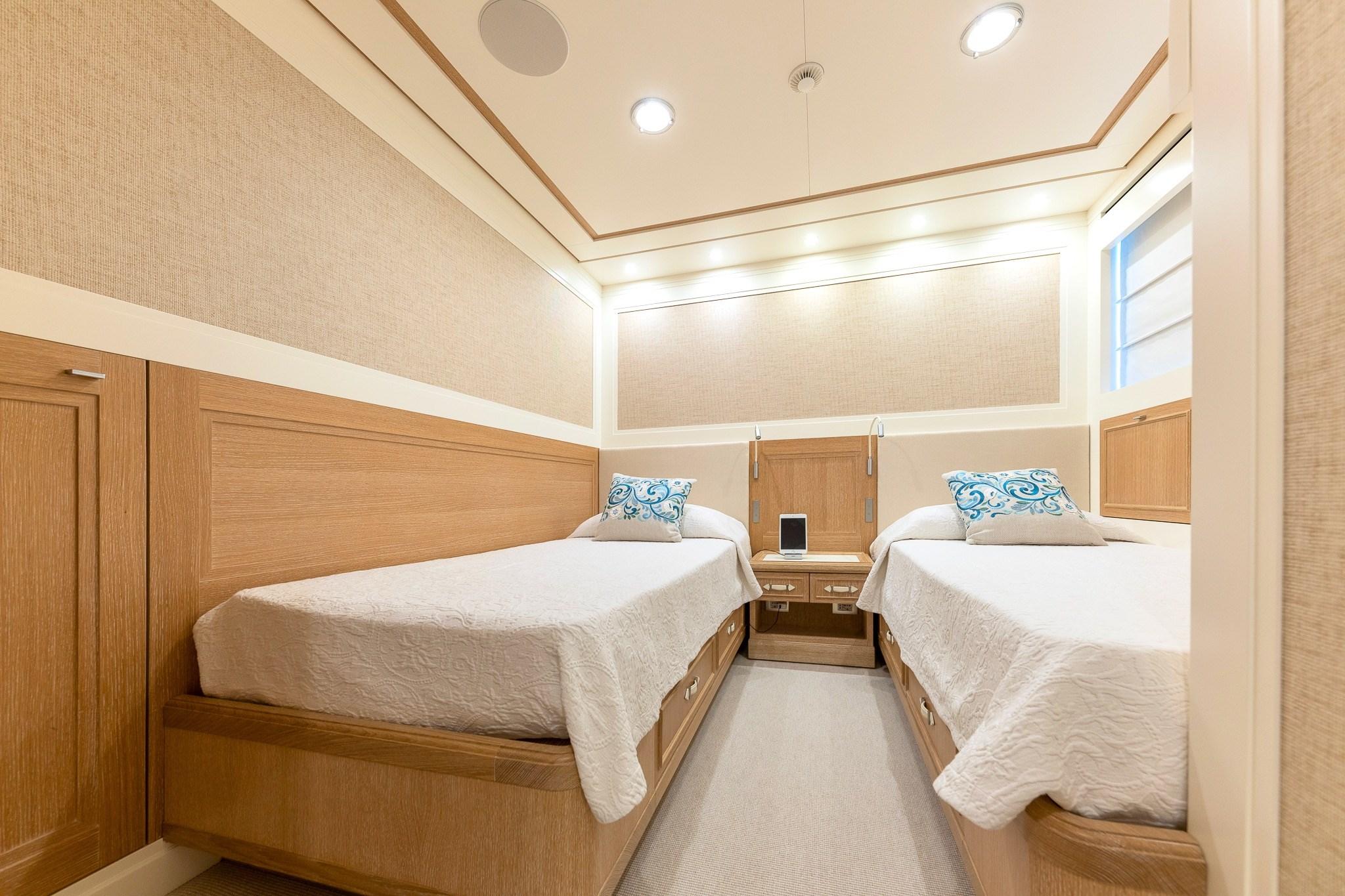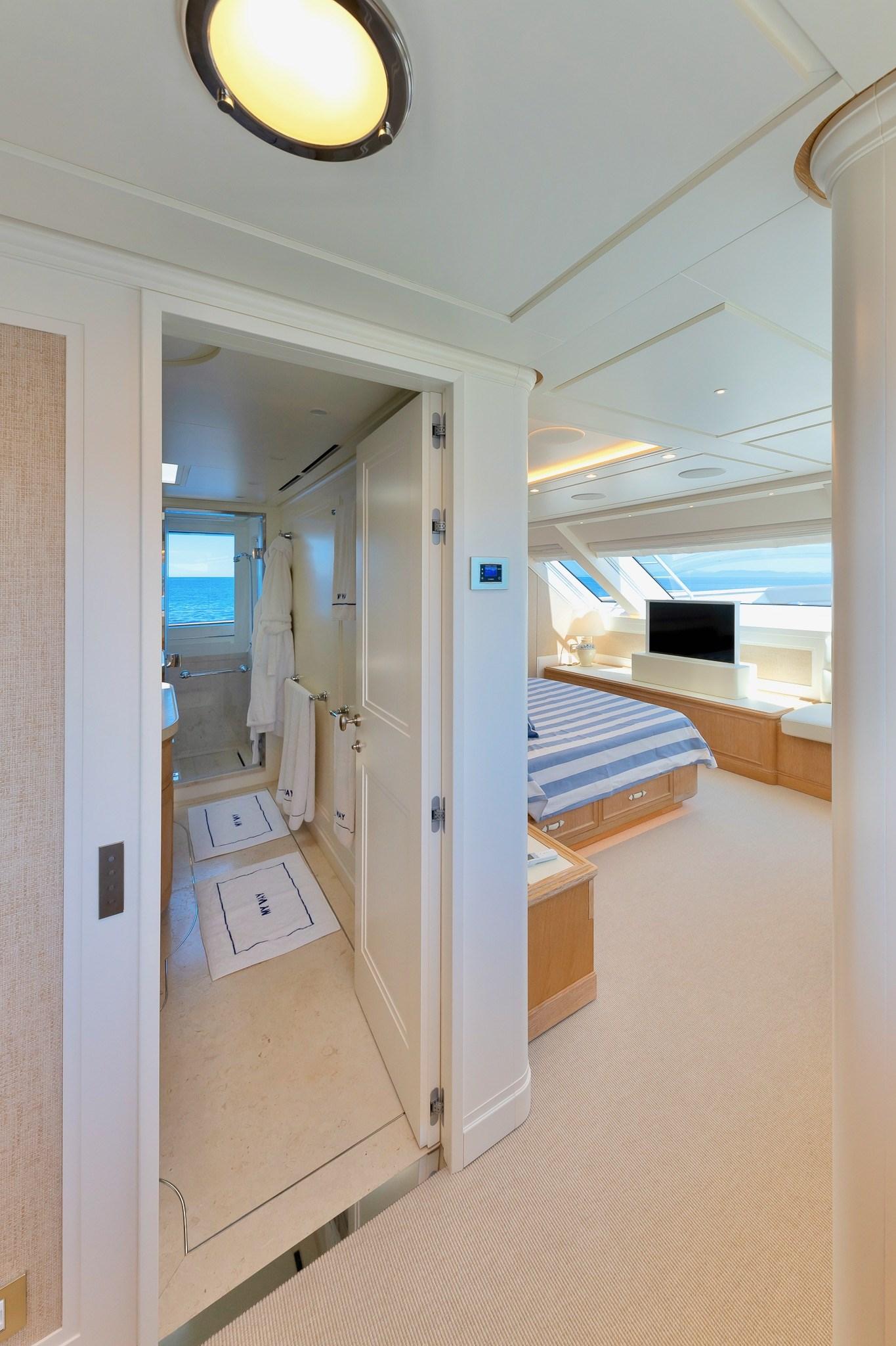 La cubierta principal cuenta con un salón espacioso y lleno de luz con asientos lujosos, que conducen sin problemas al comedor formal, con capacidad para ocho personas. El camarote principal, situado en la proa, ofrece un refugio sereno con vistas panorámicas y un lujoso baño de mármol. La cubierta inferior alberga dos camarotes VIP con camas dobles y dos camarotes de invitados, uno con cama pullman, todos con opulentos baños de mármol.