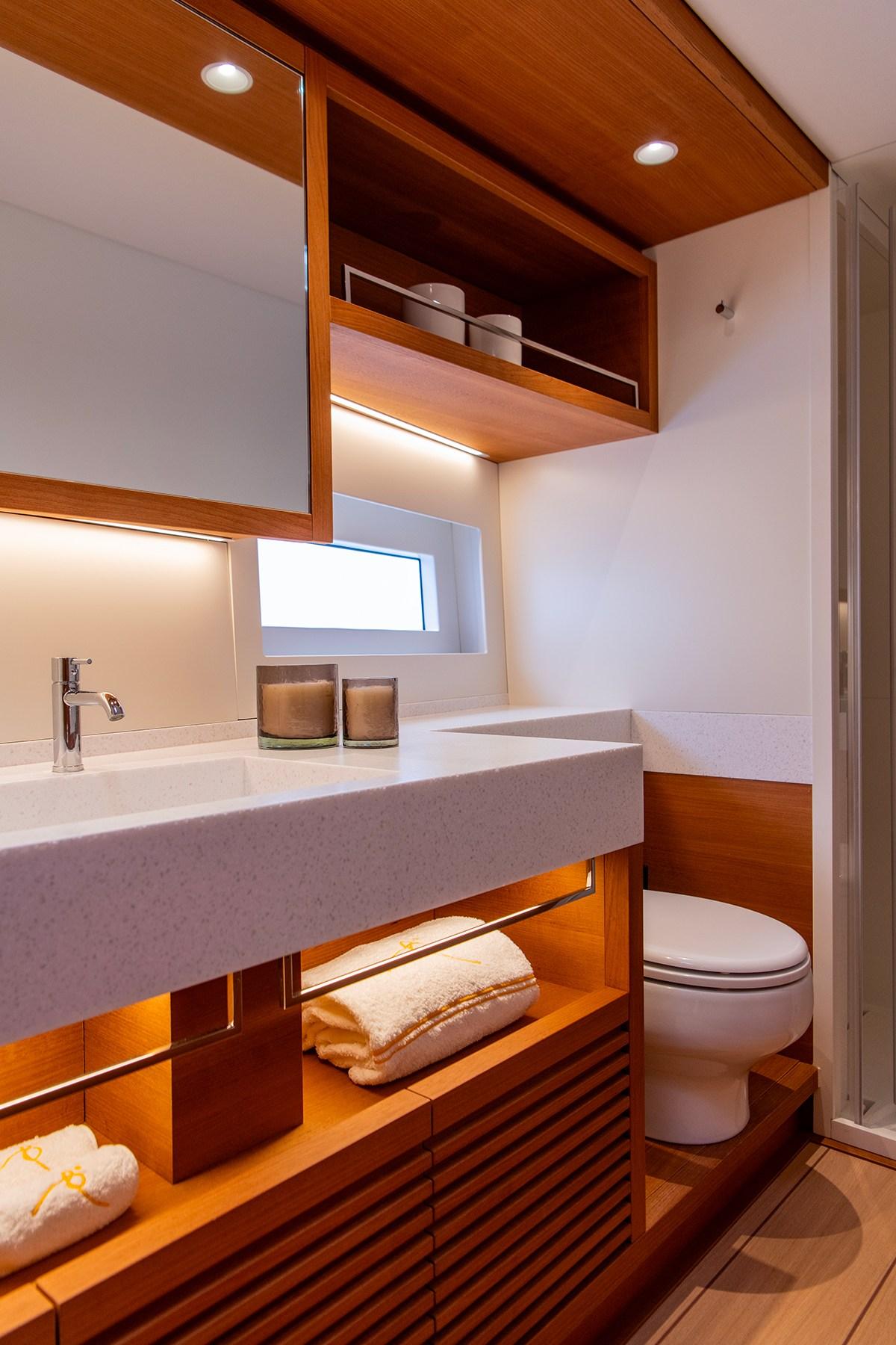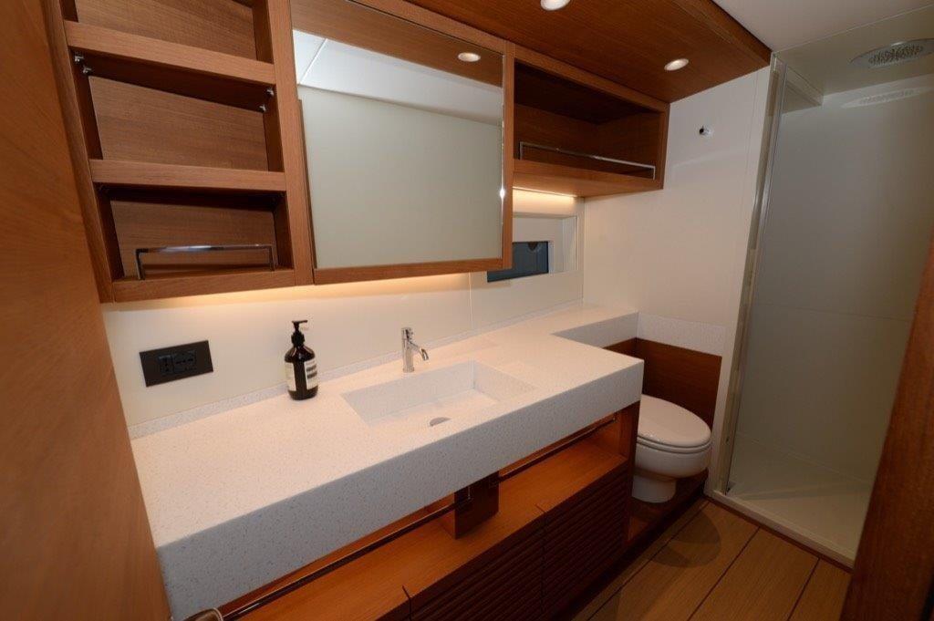 Clima reversibile, Dissalatore (OSMOSEA NEW 12-200 200L/H), Impianto acque nere, Pavimento interno in legno, Prese interne 12v, Prese interne 220v, 2 Serbatoio Acque Nere, 3 WC marino elettrico.