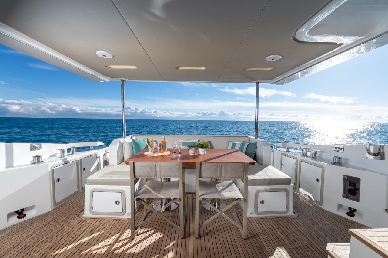 4 cabines / 3 salles d’eau, dont une magnifique cabine Master "full beam" au centre du navire, grands espaces de vie intérieurs et extérieurs, flybridge convivial et salon lumineux.