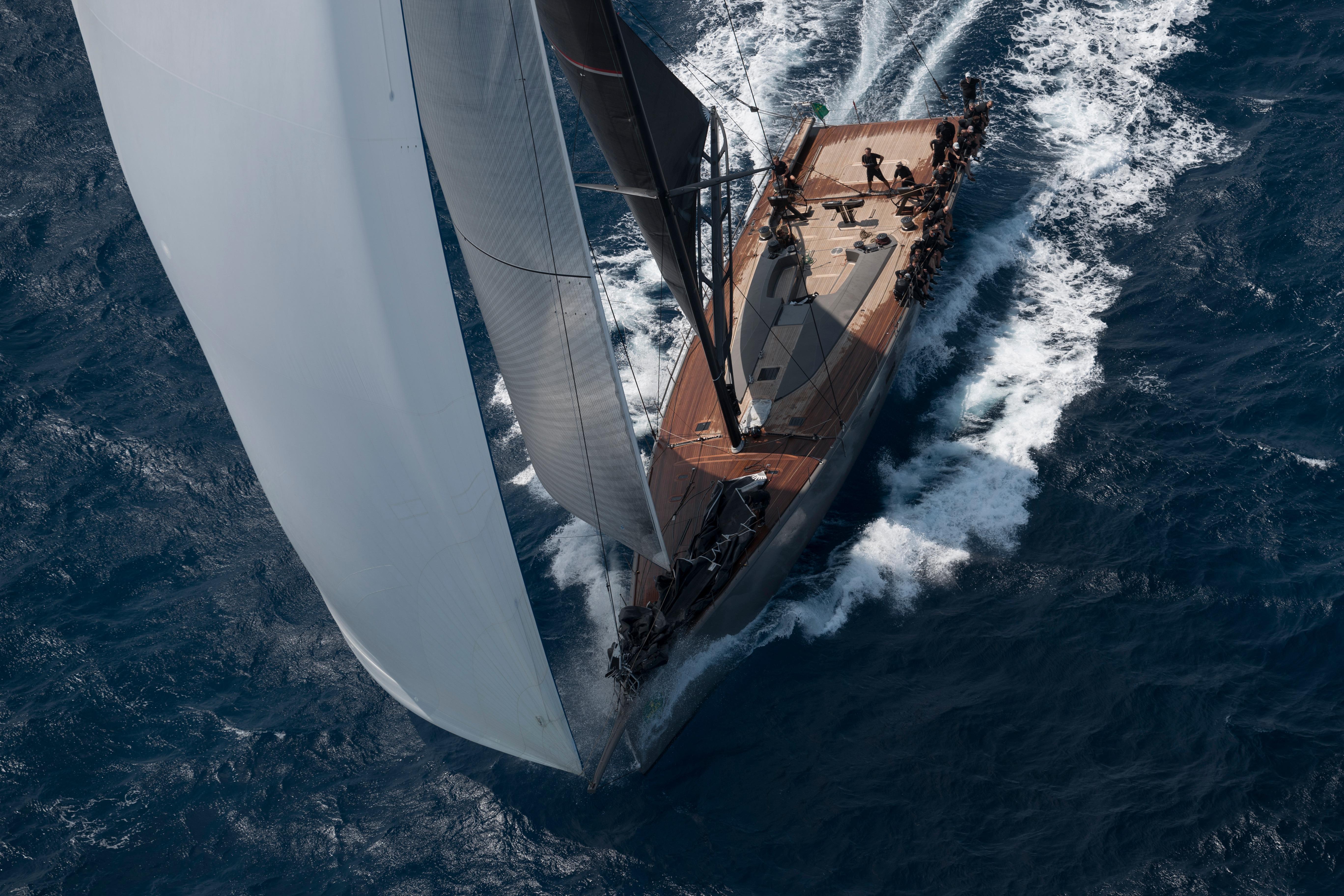 With a sail area of 640 m² upwind and 1,500 m² downwind, this 32.55-meter yacht delivers an unparalleled sailing experience. It is equipped with an advanced hydraulic system (hydraulic furlers for J2 & J3, HARKEN winches, etc.), ensuring exceptional handling and maneuverability, even at high speeds.