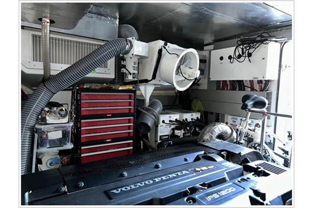 - Motorizzazione: Equipaggiato con due motori Volvo Penta IPS 1200 da 900 HP ciascuno, con circa 700 ore di utilizzo, offre prestazioni eccezionali e manovrabilità superiore grazie al sistema IPS. Velocità massima di 30 nodi e crociera confortevole a 25 nodi.
