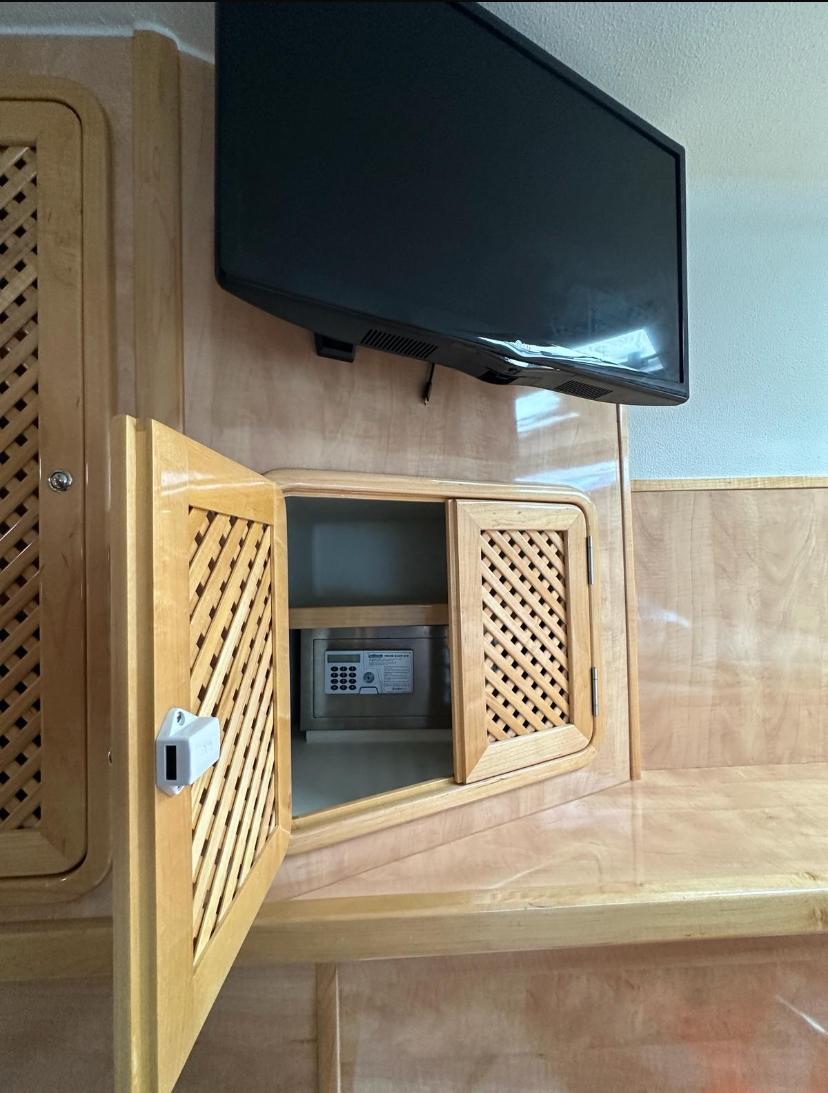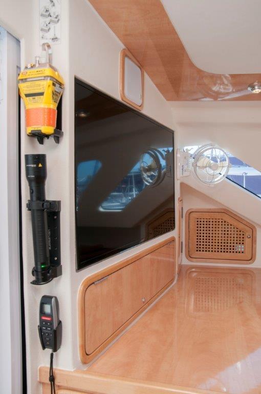 - Open-Plan Saloon: Features a multimedia system with flat-screen TV, surround sound, and panoramic 360-degree views. The sliding door opens to seamlessly merge the saloon and cockpit, creating a large indoor/outdoor living space perfect for relaxing, dining, and entertaining.
