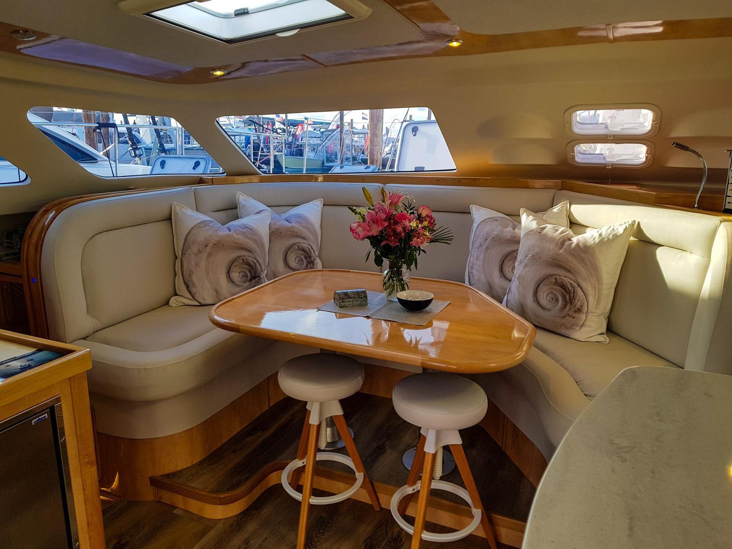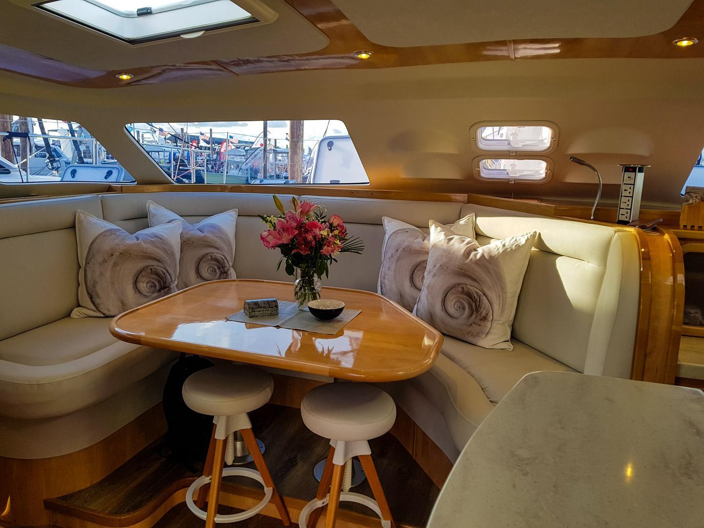 - Covered Cockpit: With an oval teak dining table that seats up to 8 people, ideal for social gatherings while underway or at anchor.