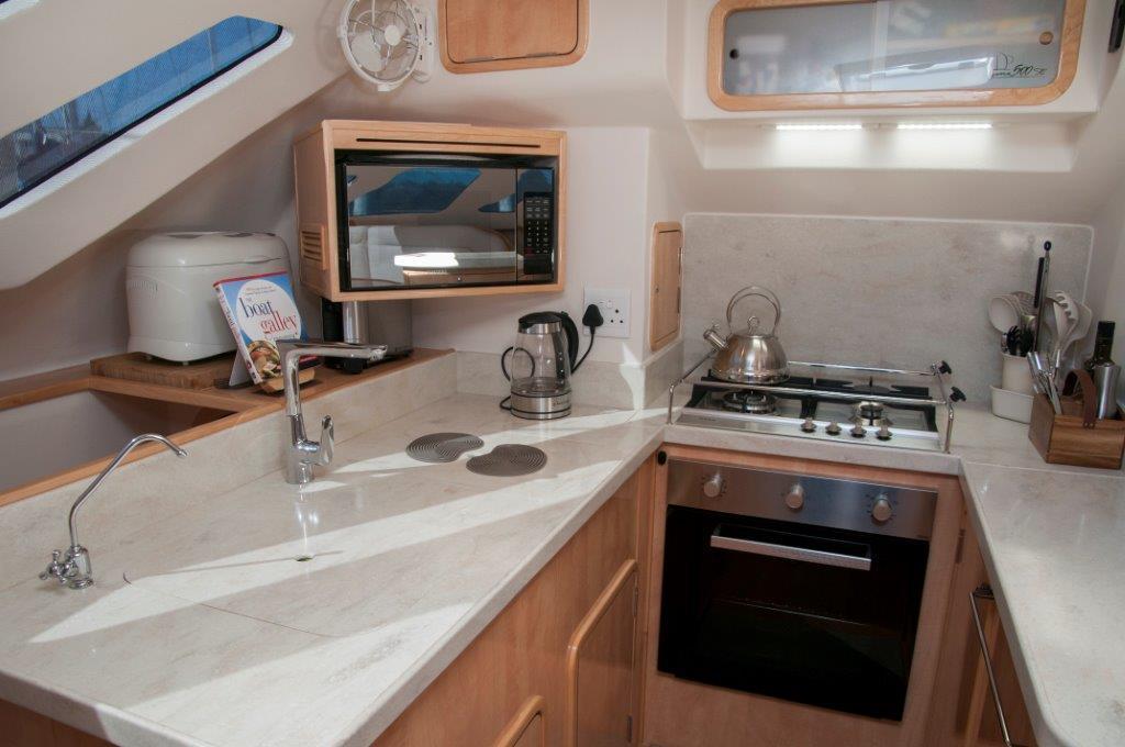 - Performance & Ease of Handling: The 500SE is designed for short-handed operation and offers excellent upwind performance, sailing at speeds in the low teens. Her sleek hulls and robust build make her fast, light, and well-suited for ocean cruising.