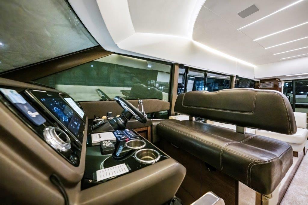 - Lower helm station with bench seating