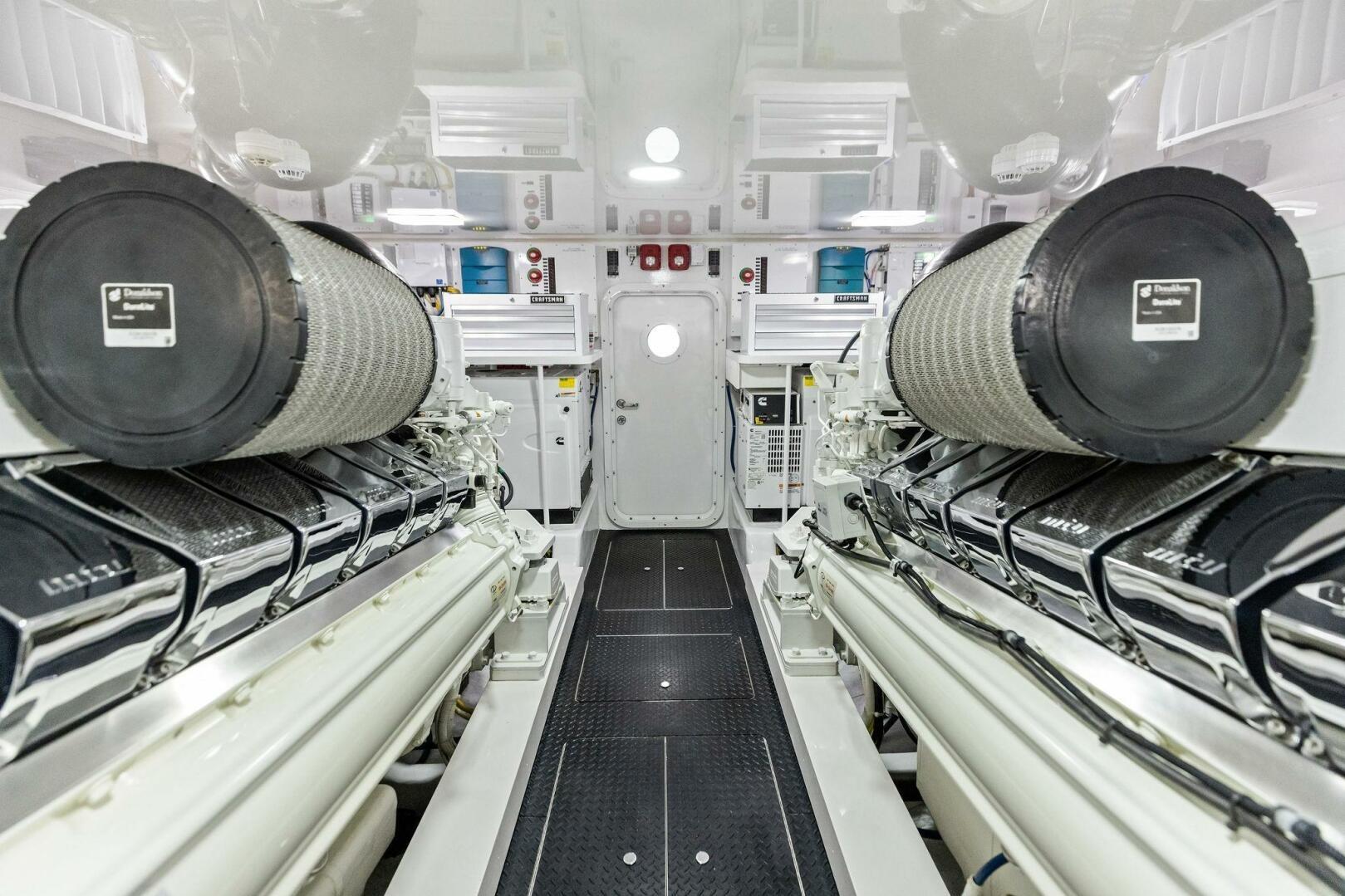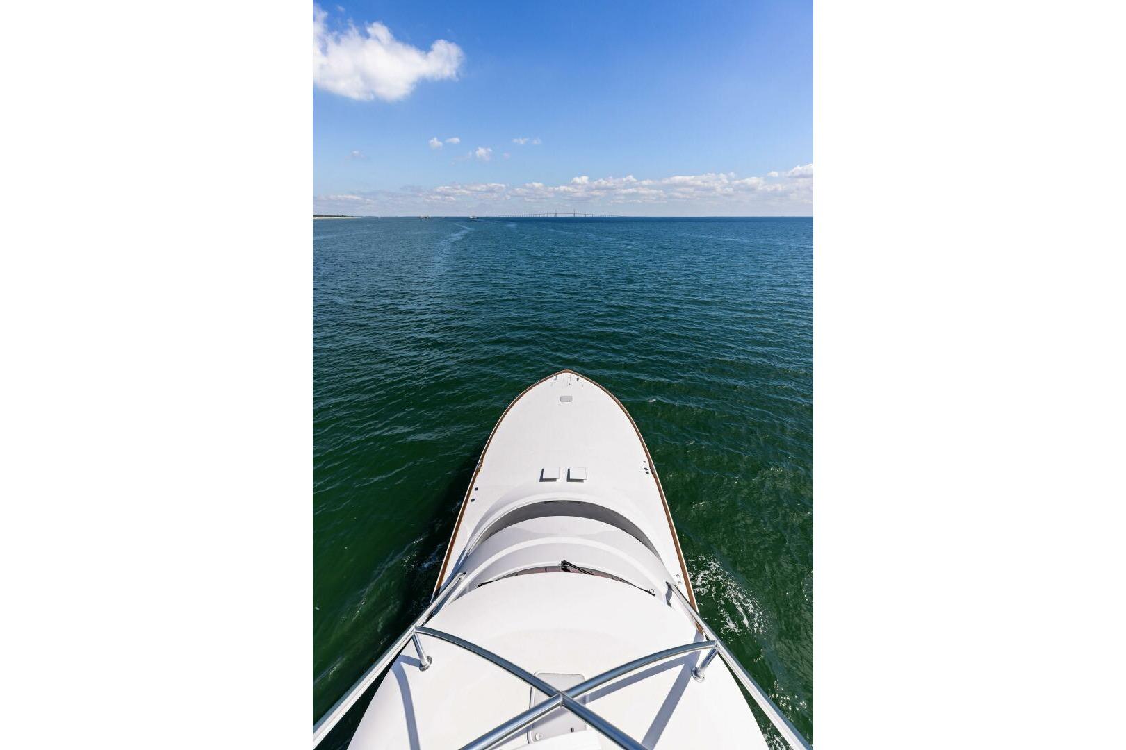 “Backlash” is a 4 stateroom 3 head layout with an island queen forward, King master stateroom, a single extra wide raised berth in port stateroom, and a custom crossover twin bunk set up in the Crew. Salon has an L shaped sofa, day head, and stairway to Enclosed bridge. Galley is open, with extended waterfall edged and lighted counter and Release Dubliner bar stools. Timber is high gloss, horizontal grain walnut with Ebony inlayed stateroom doors. All interior cabinet hardware & overhead lighting is brushed nickel with brushed nickel head hardware and chrome shower fixtures and hinges. Flooring is a combination of Amtico vinyl and carpet. Enclosed bridge is all Amtico with carpet on the raised platform area. All bedding, pillows, fabrics and Décor are “Prestige” level with designer artwork and accessories. All mattresses are innerspring Viking slumber #6 or 8 depending on placement.